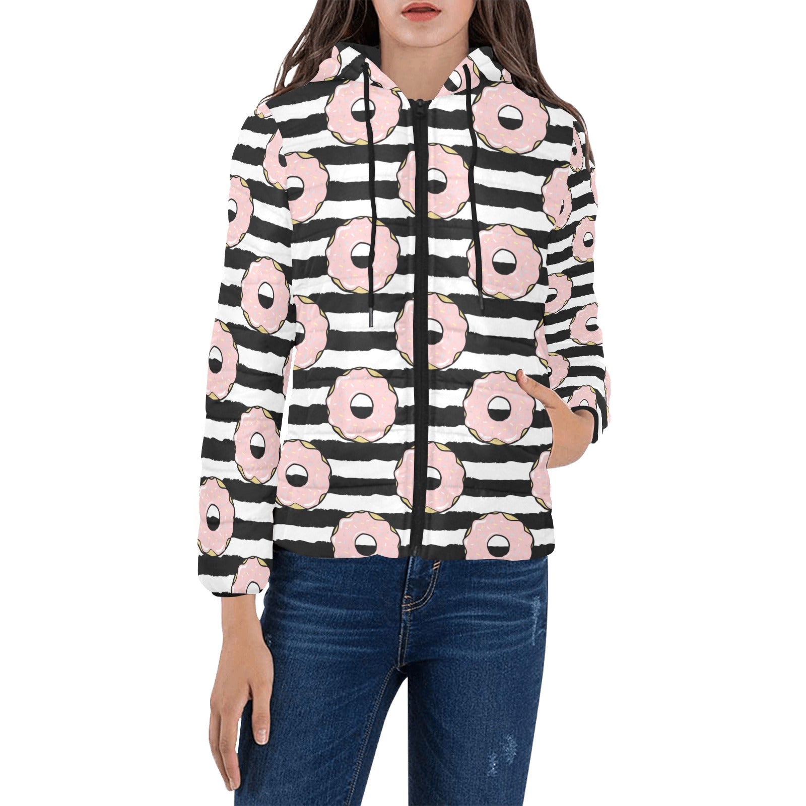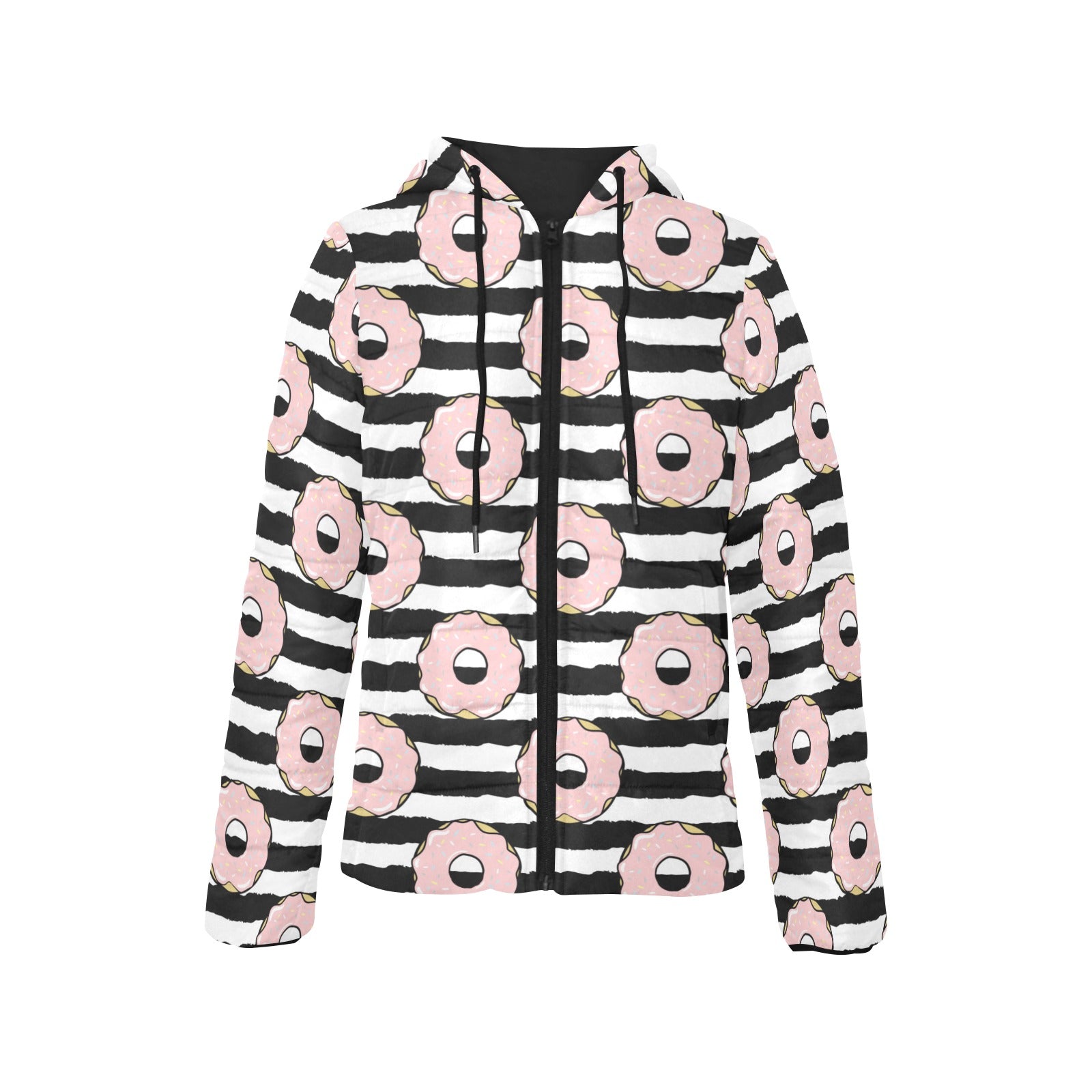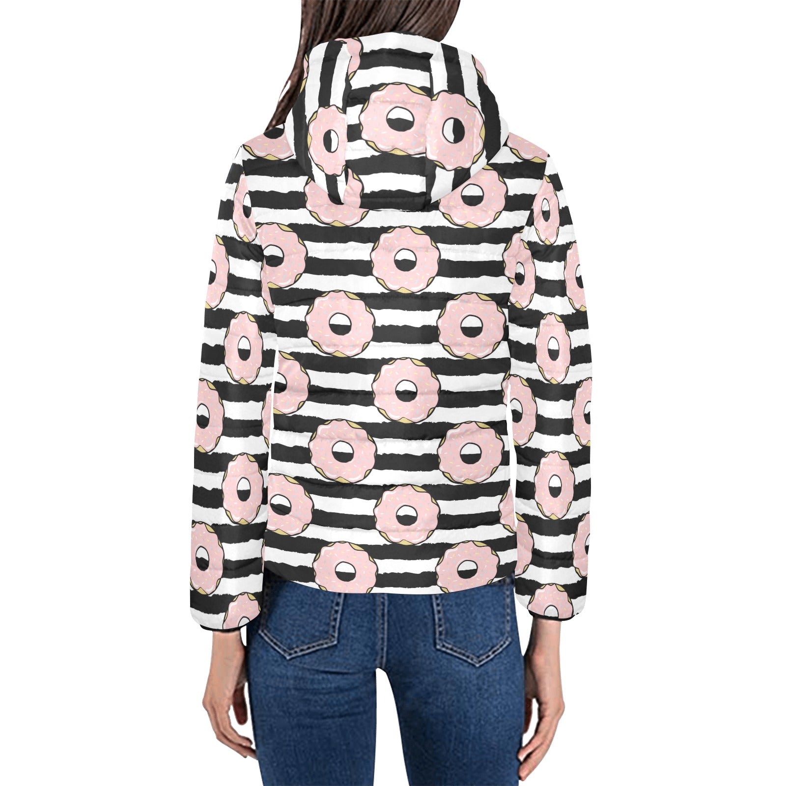 Donuts pink icing striped pattern Women's Padded Hooded Jacket