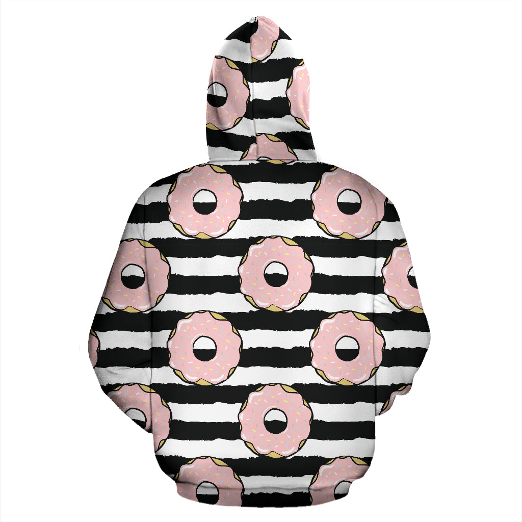 Donuts Pink Icing Striped Pattern Zip Up Hoodie