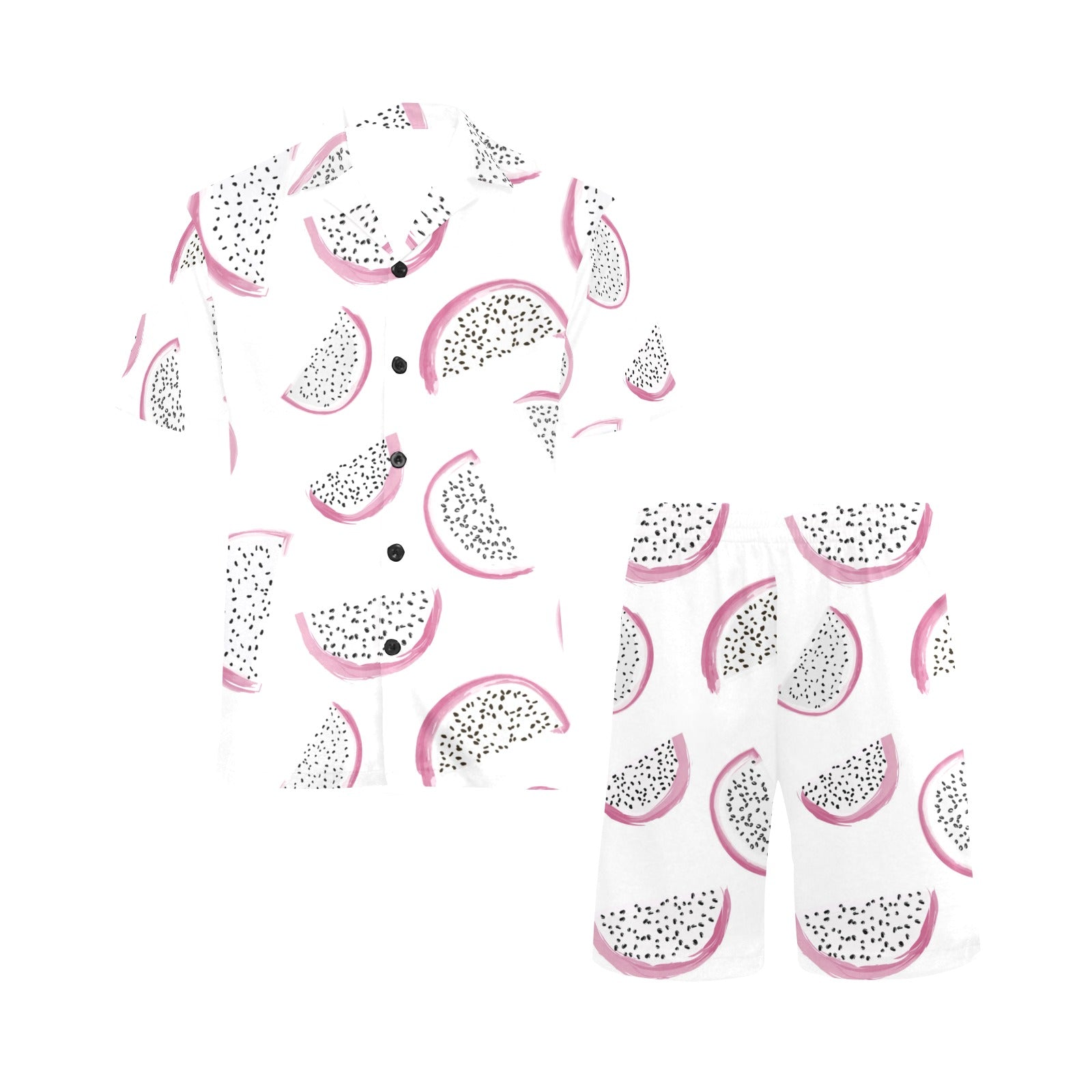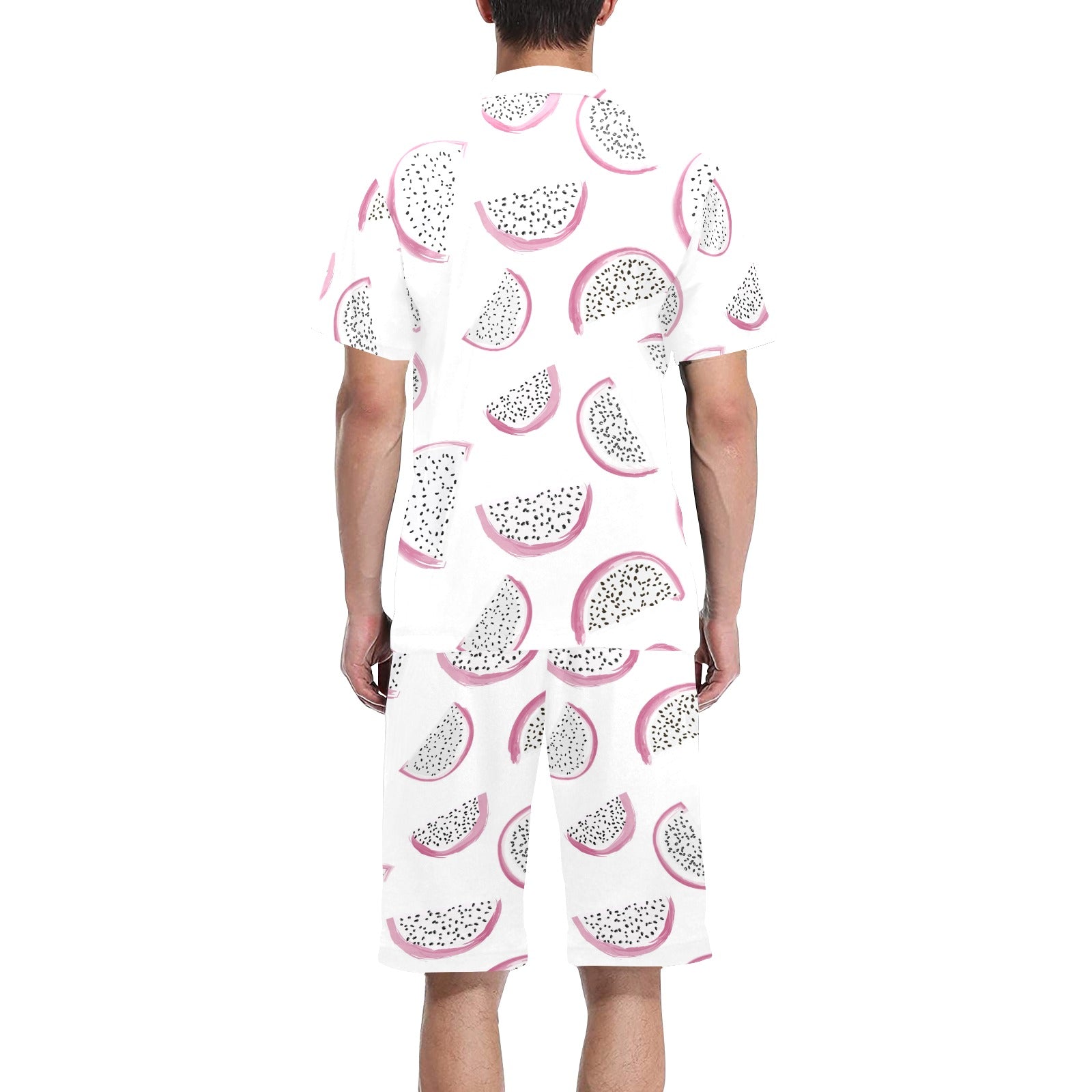dragon fruit pattern Men's V-Neck Short Pajama Set