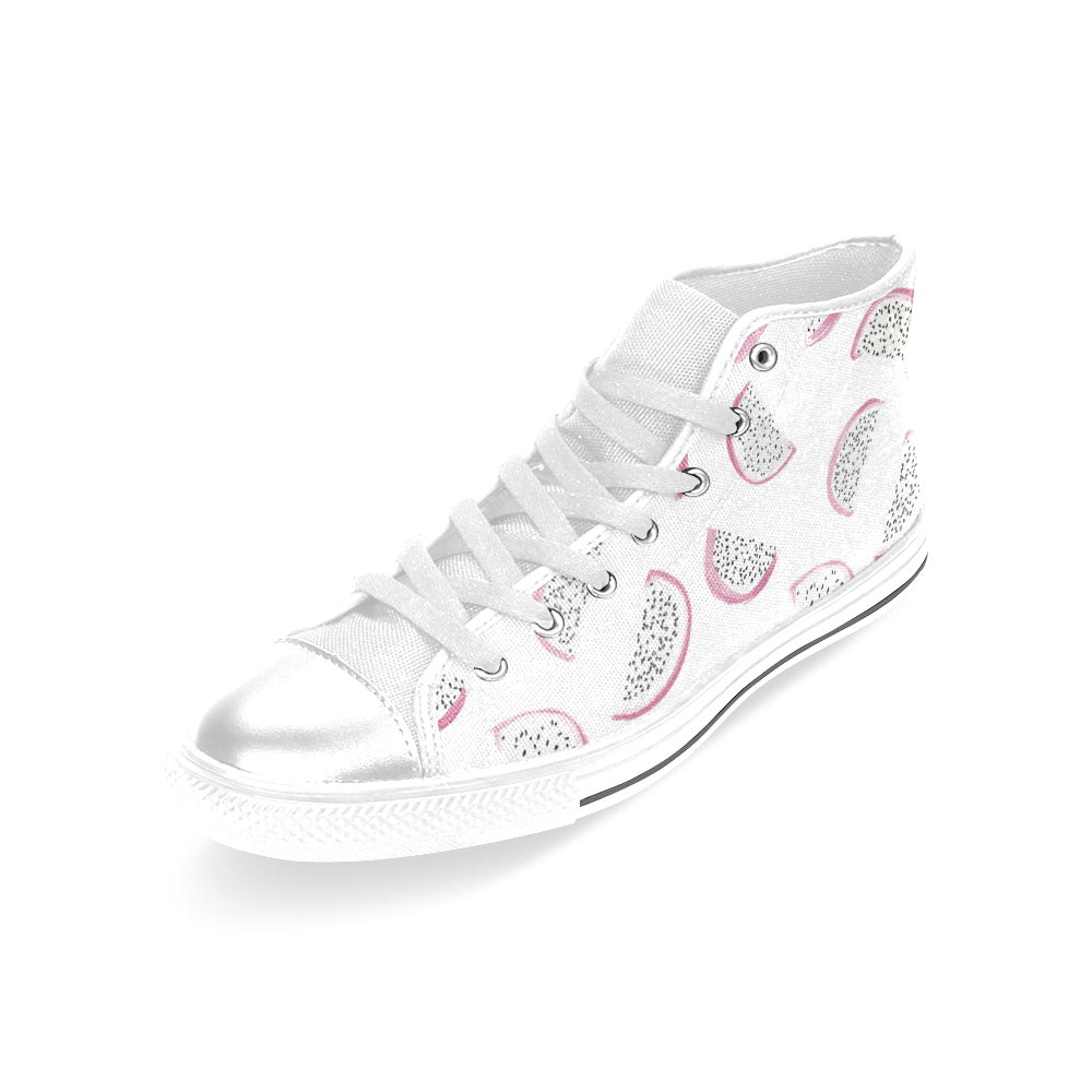 dragon fruit pattern Women's High Top Canvas Shoes White