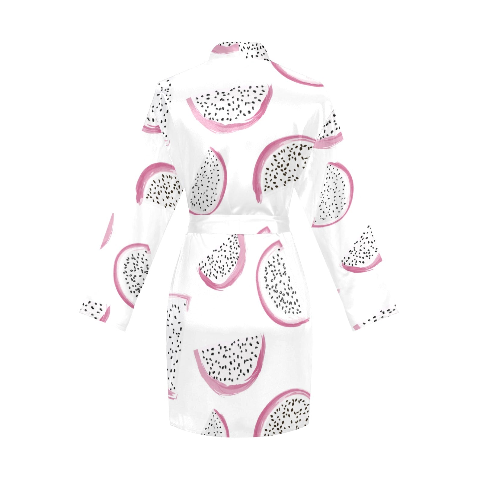 dragon fruit pattern Women's Long Sleeve Belted Night Robe
