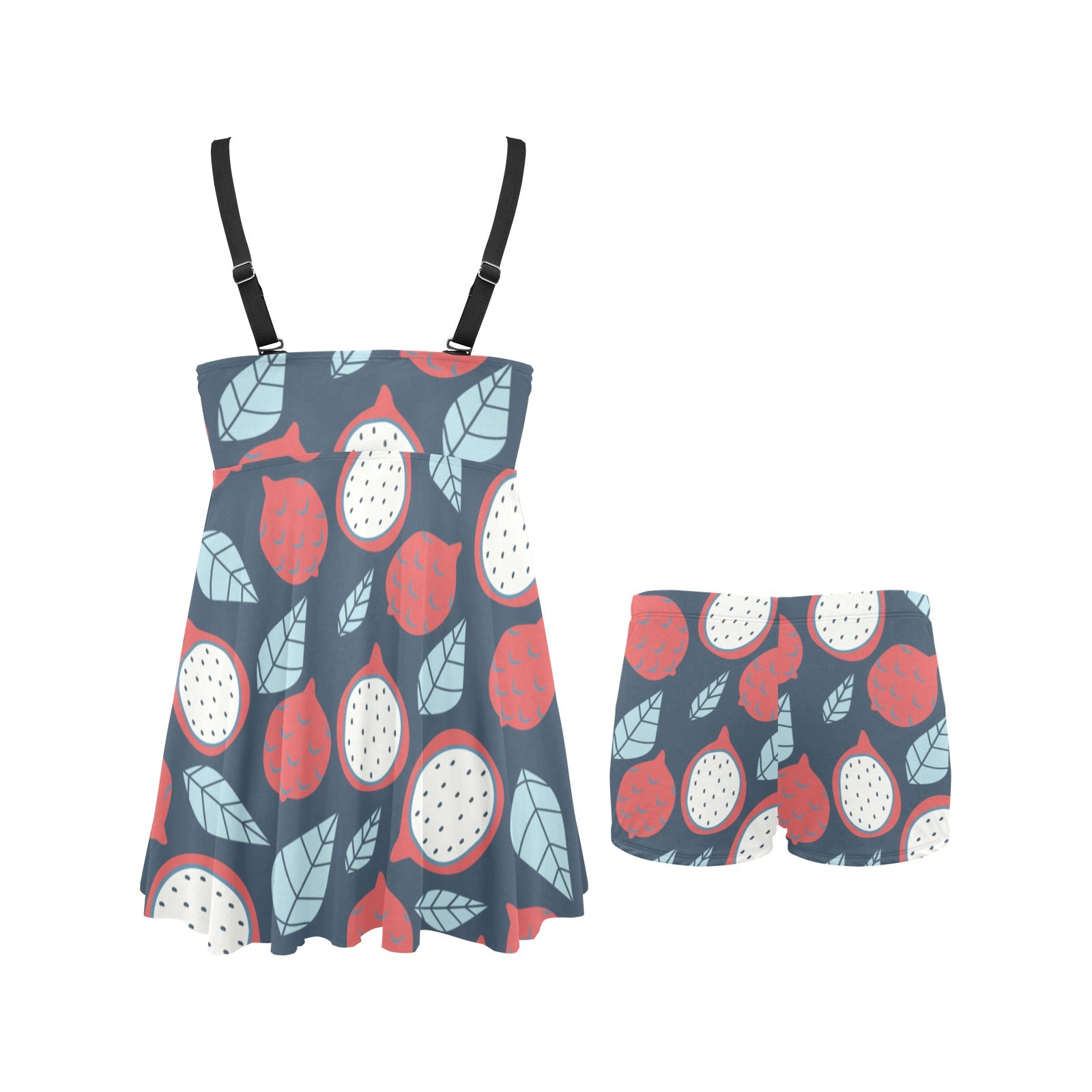 dragon fruits dark blue background Chest Sexy Pleated Two Piece Swim Dress