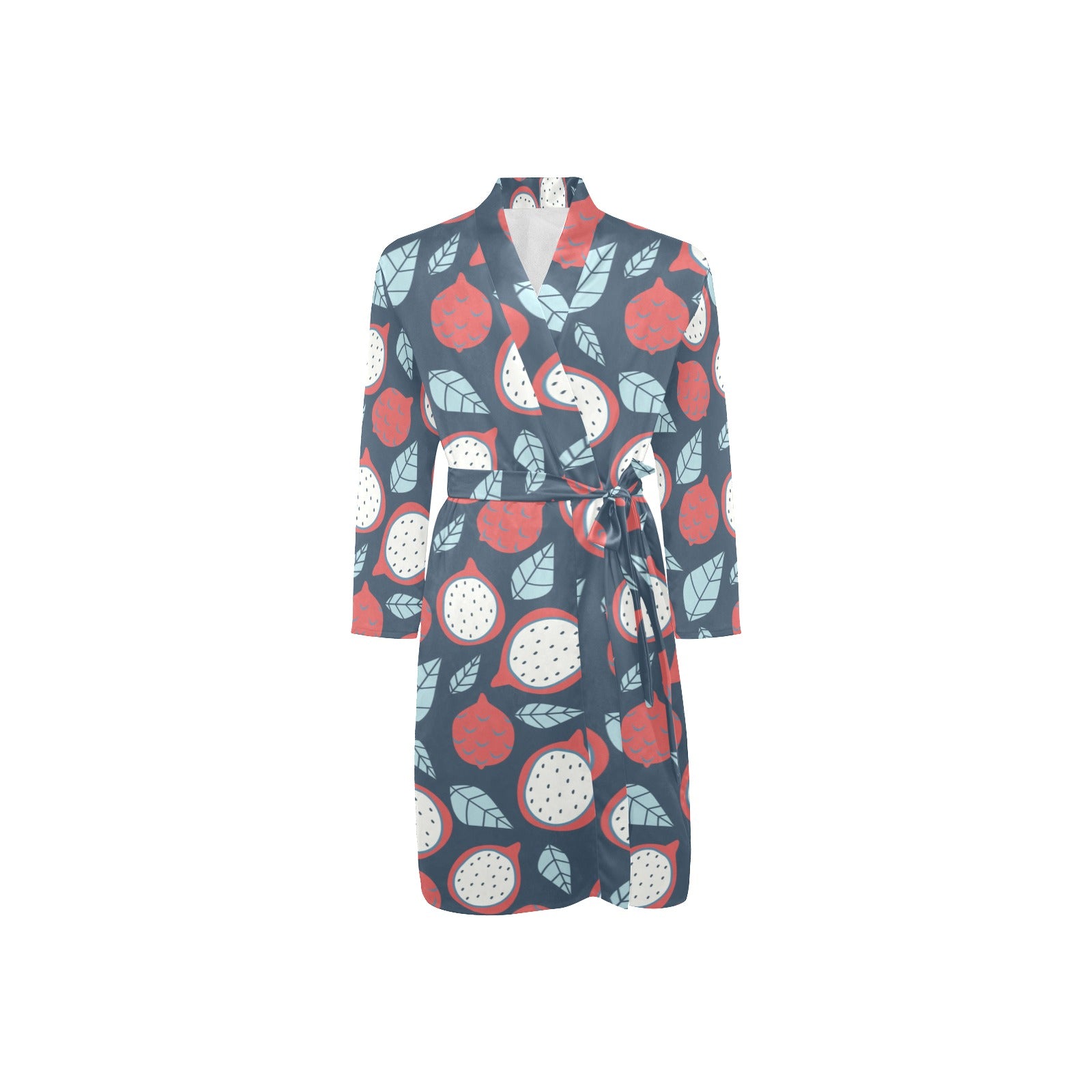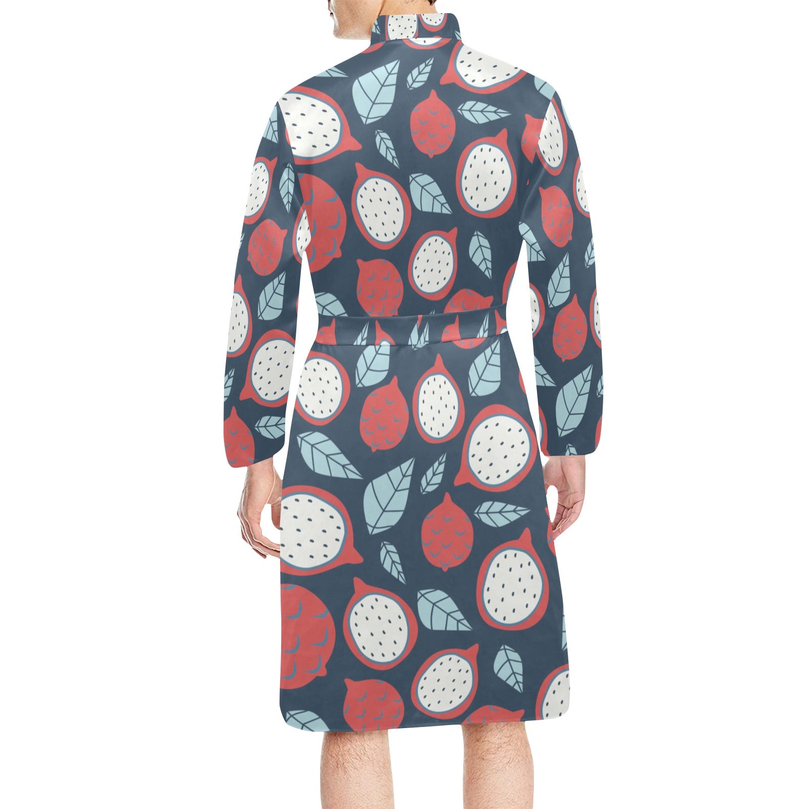 dragon fruits dark blue background Men's Long Sleeve Belted Night Robe