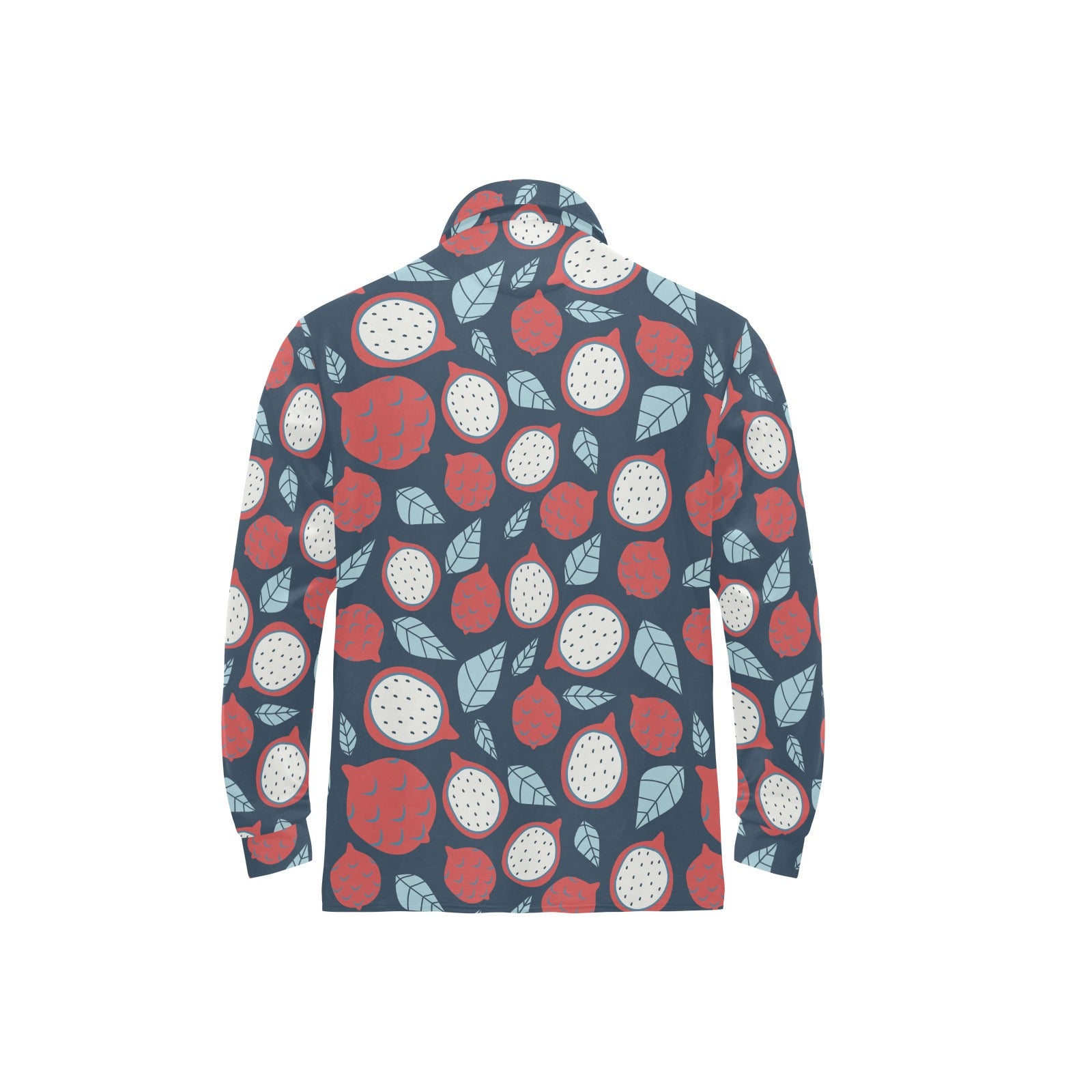 dragon fruits dark blue background Men's Long Sleeve Polo Shirt