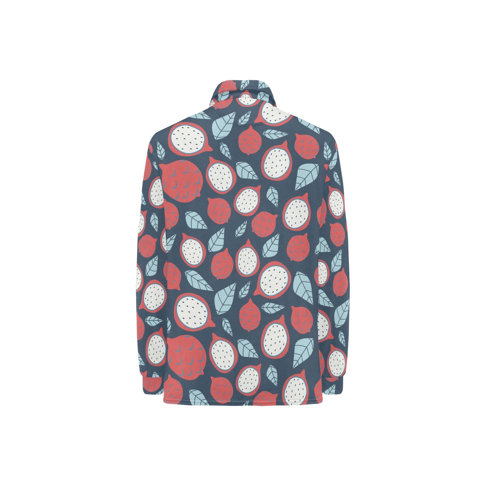 dragon fruits dark blue background Women's Long Sleeve Polo Shirt