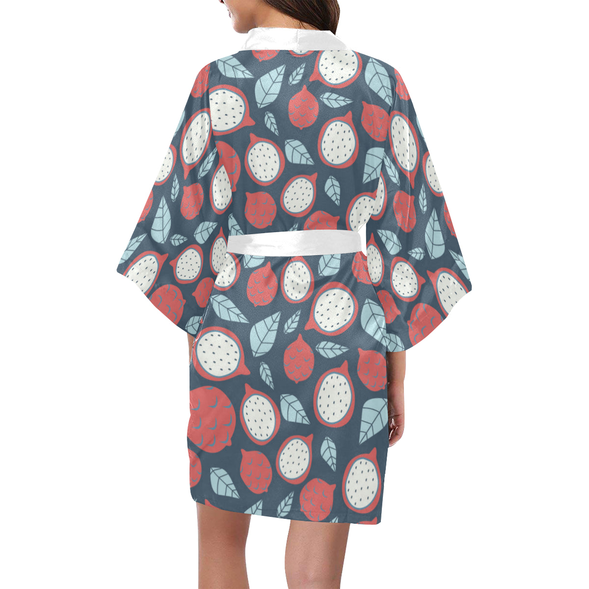 dragon fruits dark blue background Women's Short Kimono Robe is a uniqued design and limited item. It made to order, hand printed, and sewn with love in our factory.