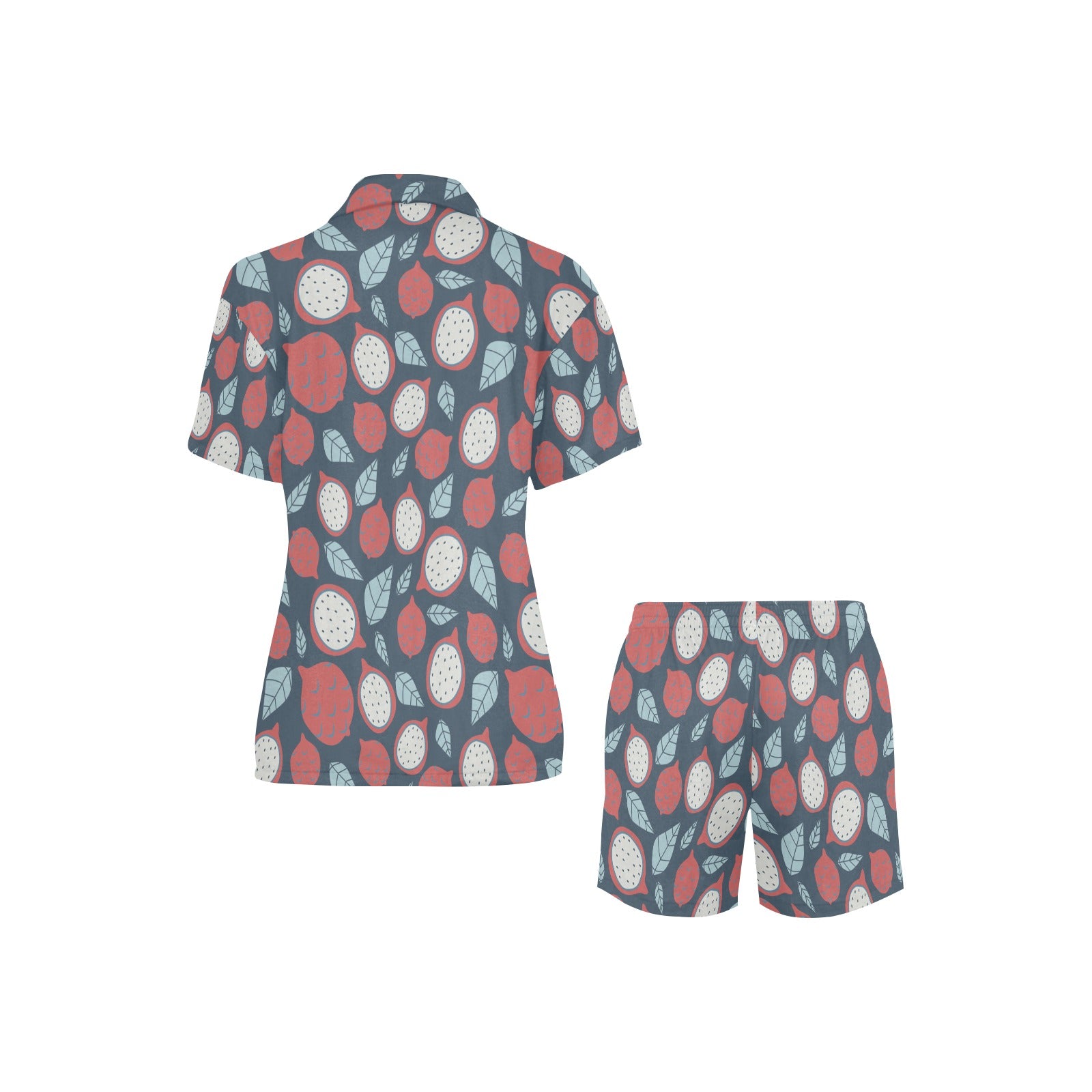 dragon fruits dark blue background Women's V-Neck Short Pajama Set
