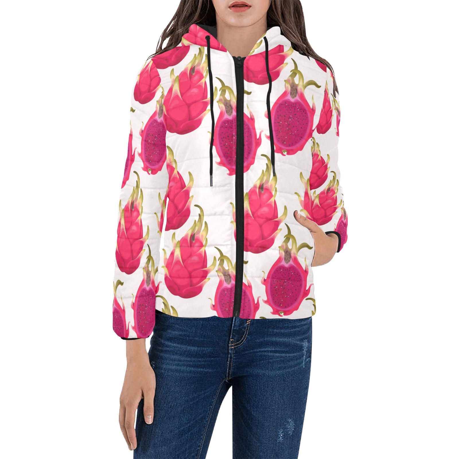dragon fruits design pattern Women's Padded Hooded Jacket
