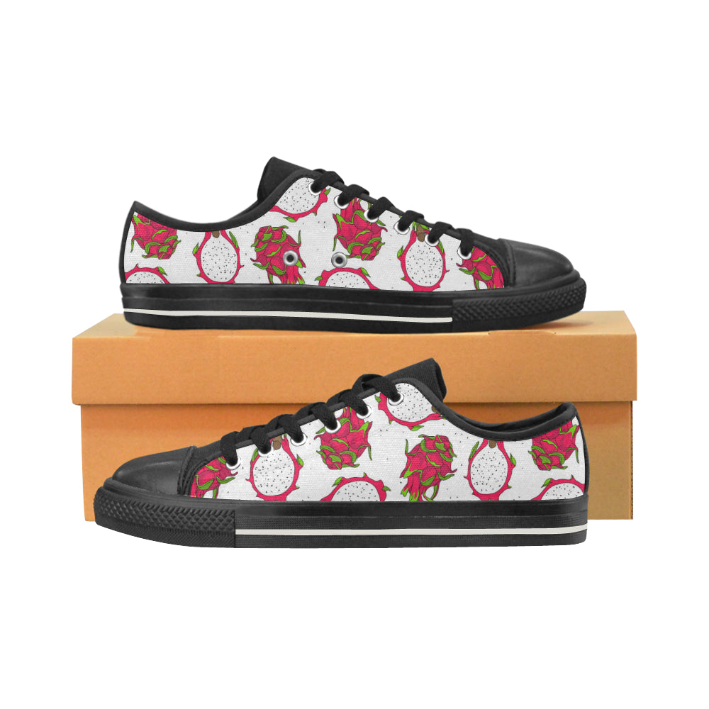 dragon fruits white background Men's Low Top Canvas Shoes Black