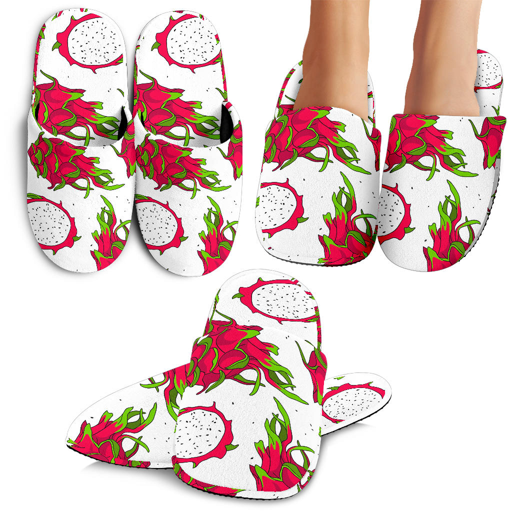 dragon fruits white background Slippers are uniqued design and limited item. It made to order, hand printed, and sewn with love in our factory.