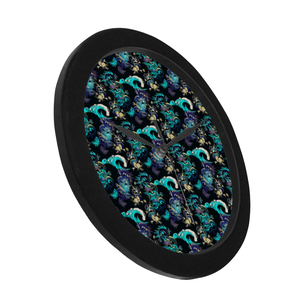 Dragon sea wave pattern Elegant Black Wall Clock