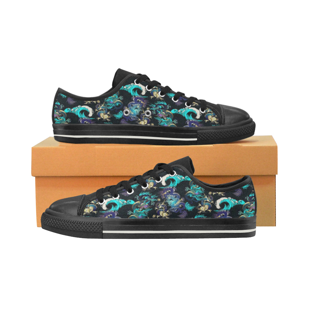Dragon sea wave pattern Men's Low Top Canvas Shoes Black