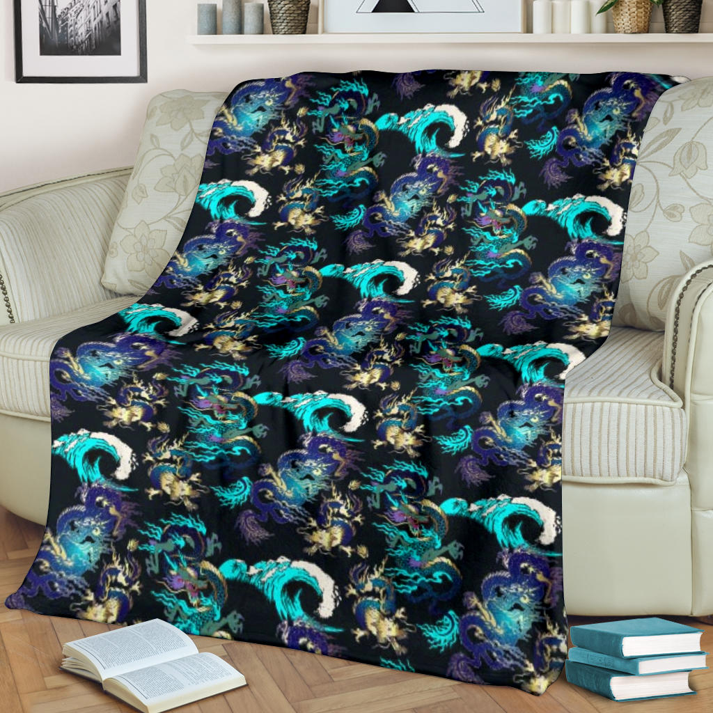 Dragon sea wave pattern Premium Blanket is a uniqued design and limited item. It made to order, hand printed, and sewn with love in our factory.