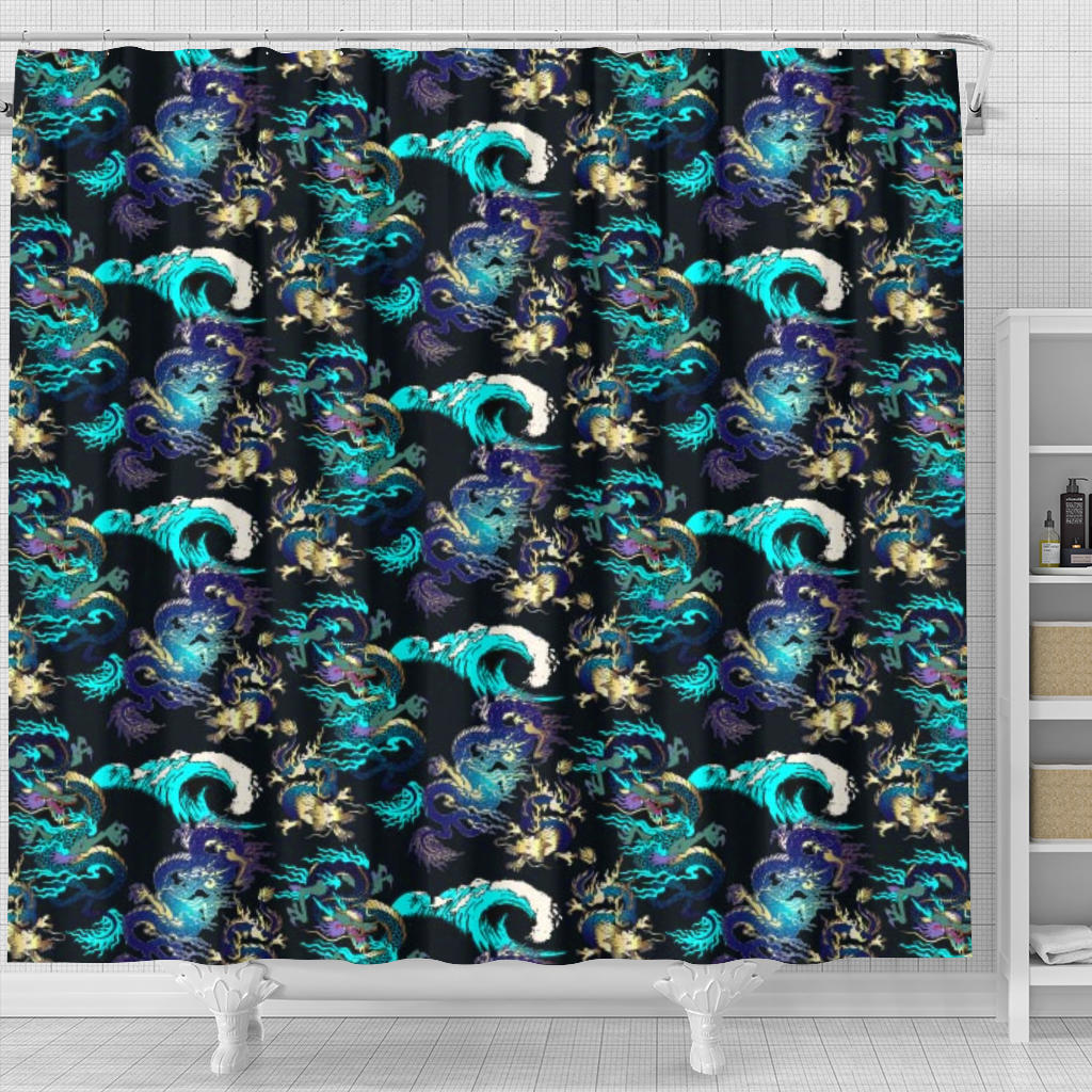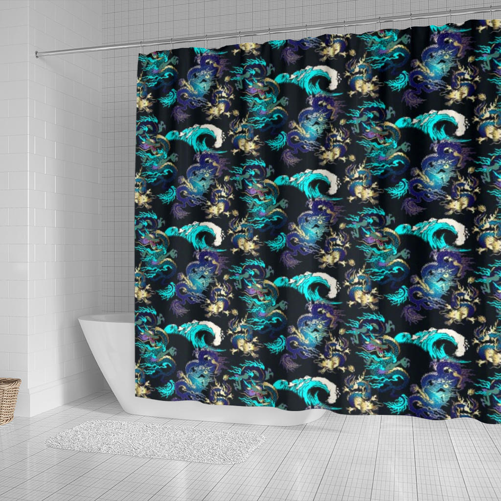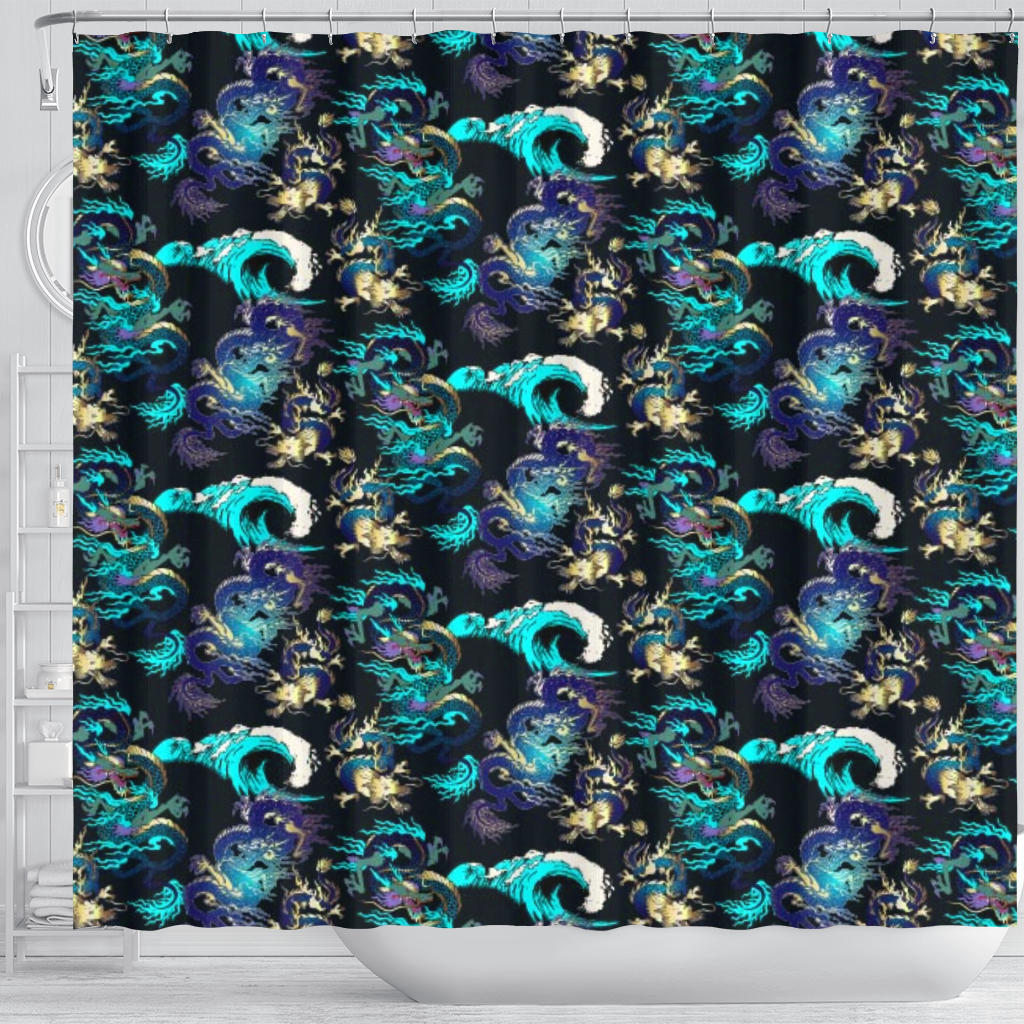 Dragon sea wave pattern Shower Curtain is a uniqued design and limited item. It made to order, hand printed, and sewn with love in our factory.