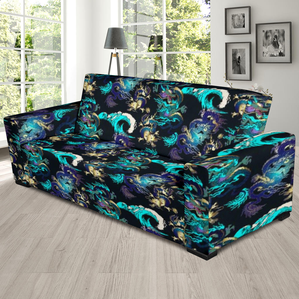 Dragon sea wave pattern Sofa Slipcover is a uniqued design and limited item. It made to order, hand printed, and sewn with love in our factory.