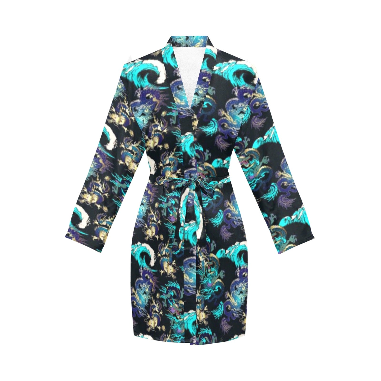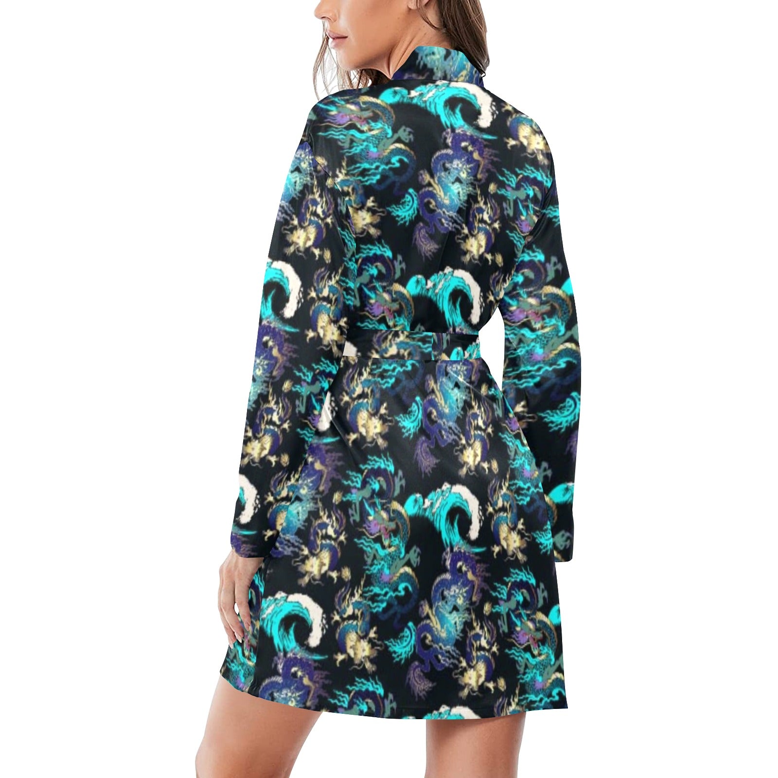 Dragon sea wave pattern Women's Long Sleeve Belted Night Robe