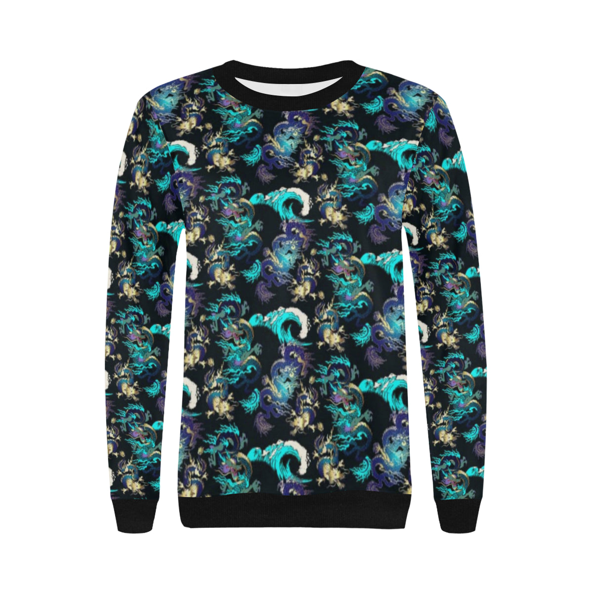 Dragon sea wave pattern Women's Crew Neck Sweatshirt is a uniqued design and limited item. It made to order, hand printed, and sewn with love in our factory.