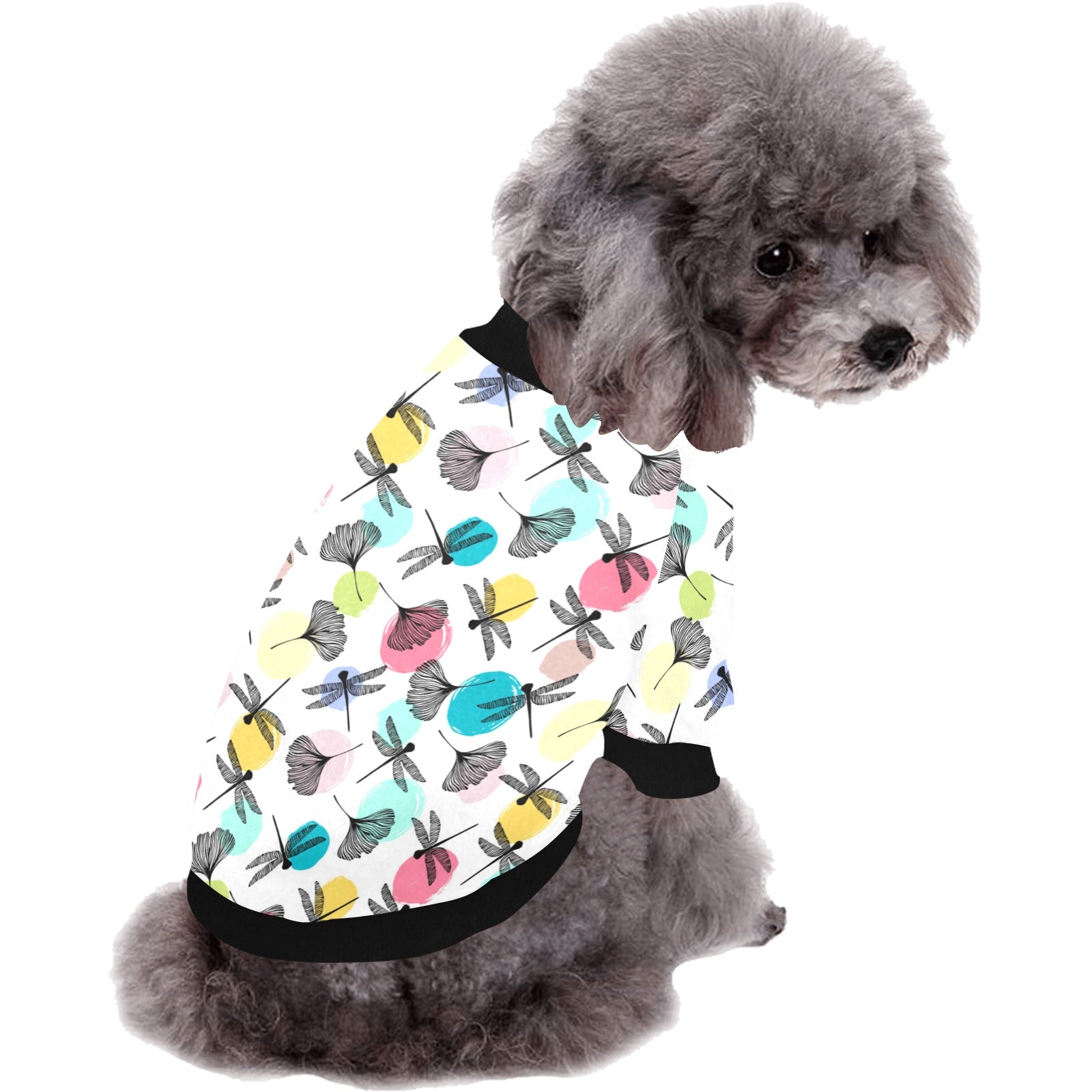 Dragonflies ginkgo leaves pattern All Over Print Pet Dog Round Neck Fuzzy Shirt