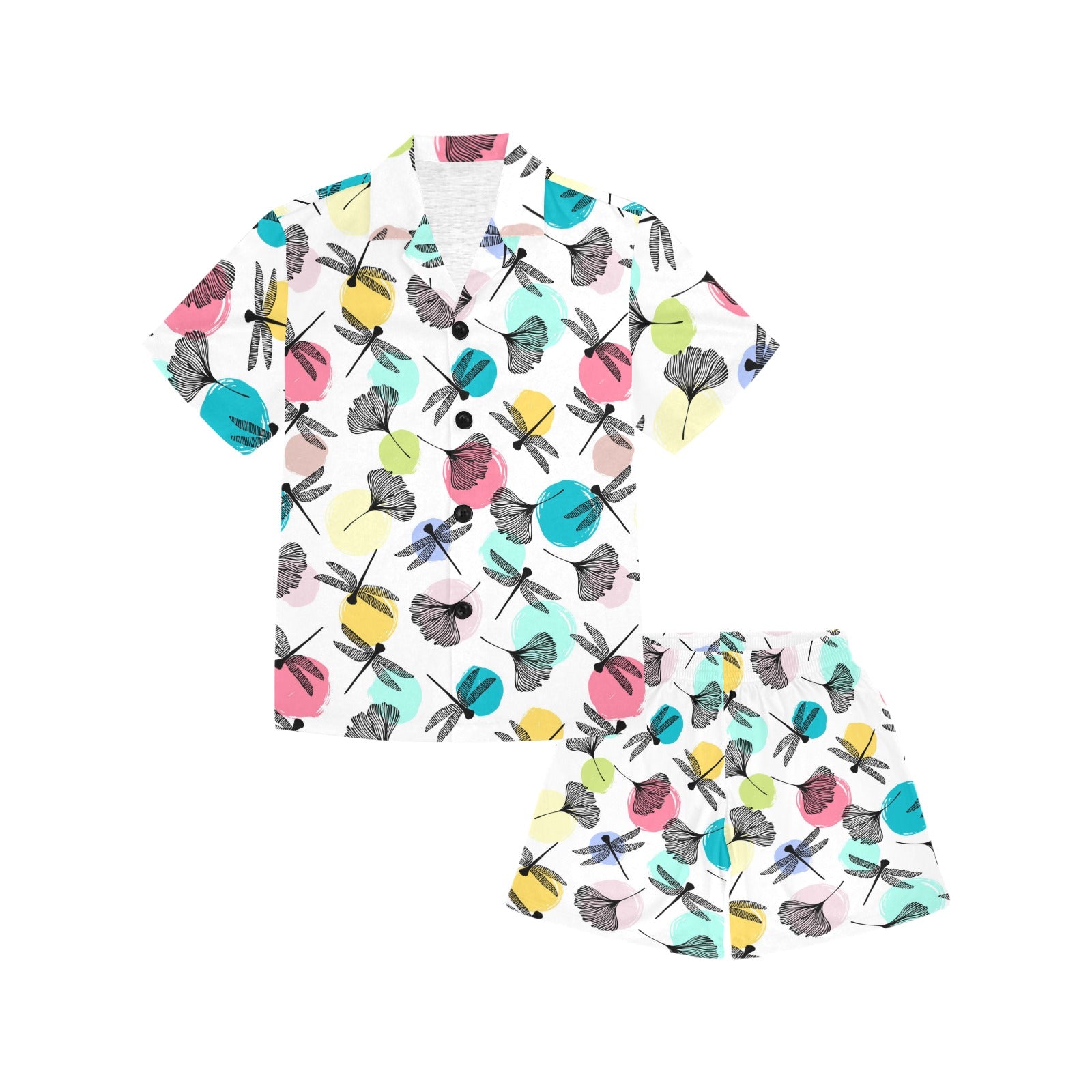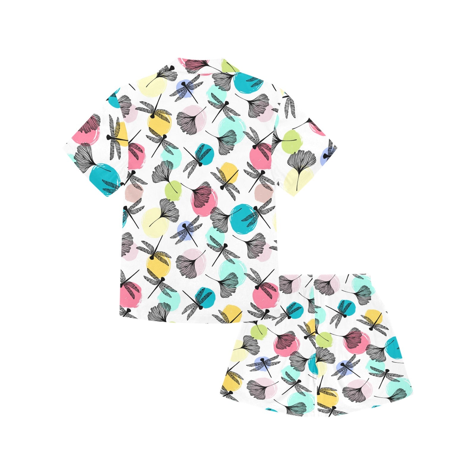 Dragonflies ginkgo leaves pattern Kids' Boys' Girls' V-Neck Short Pajama Set