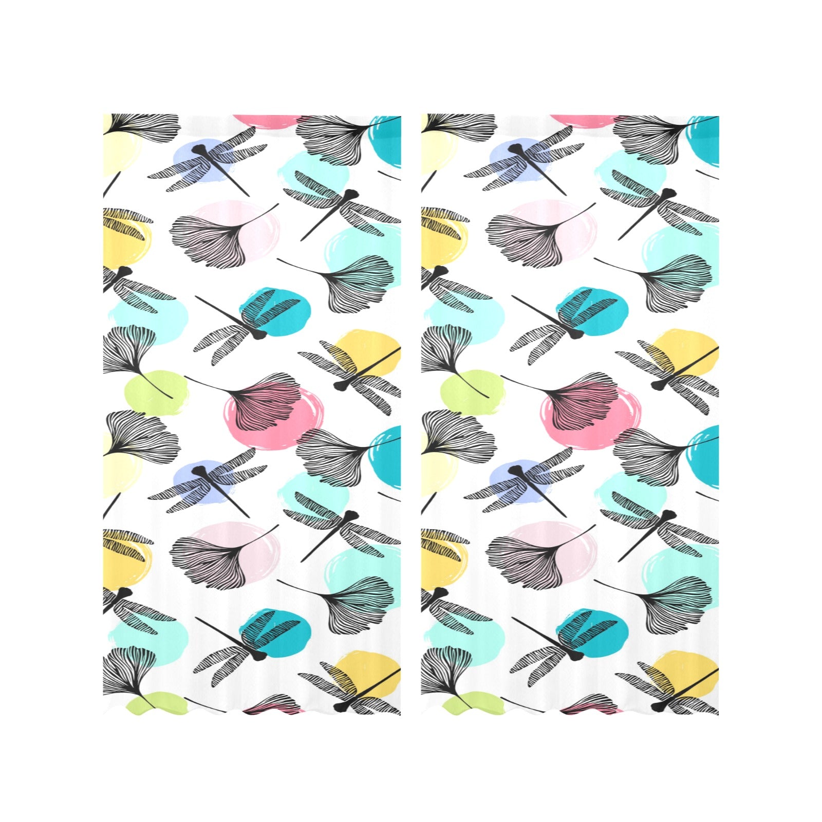 Dragonflies ginkgo leaves pattern Gauze Curtain