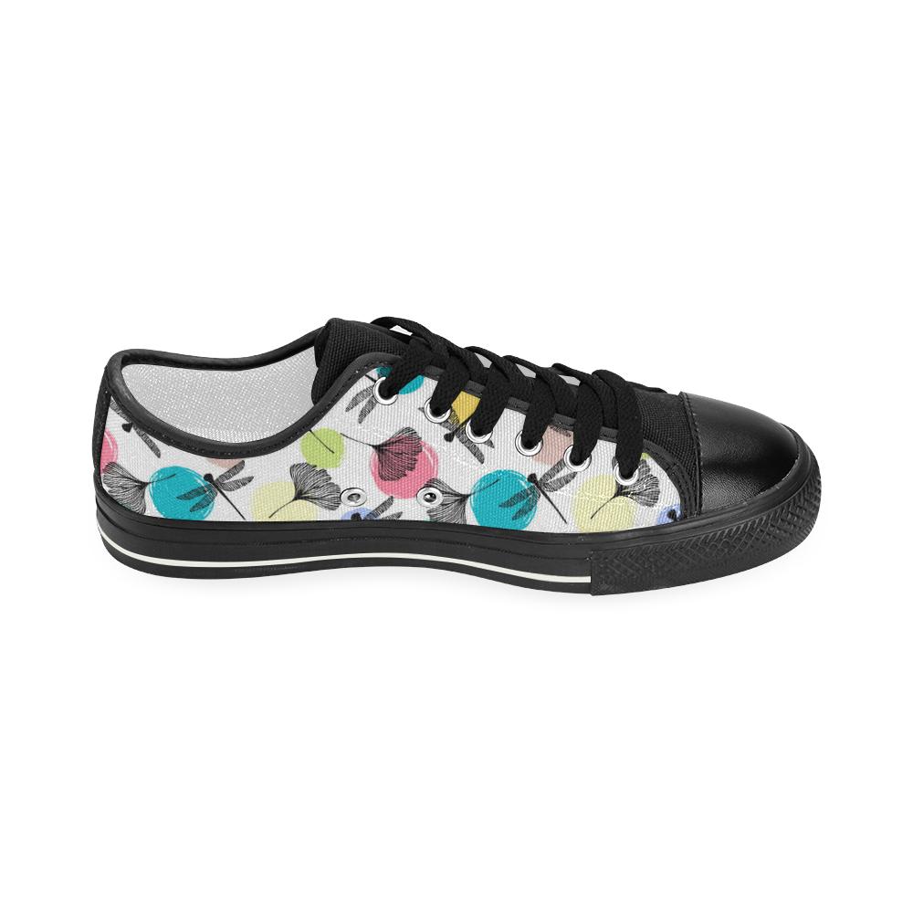 Dragonflies ginkgo leaves pattern Kids' Boys' Girls' Low Top Canvas Shoes Black