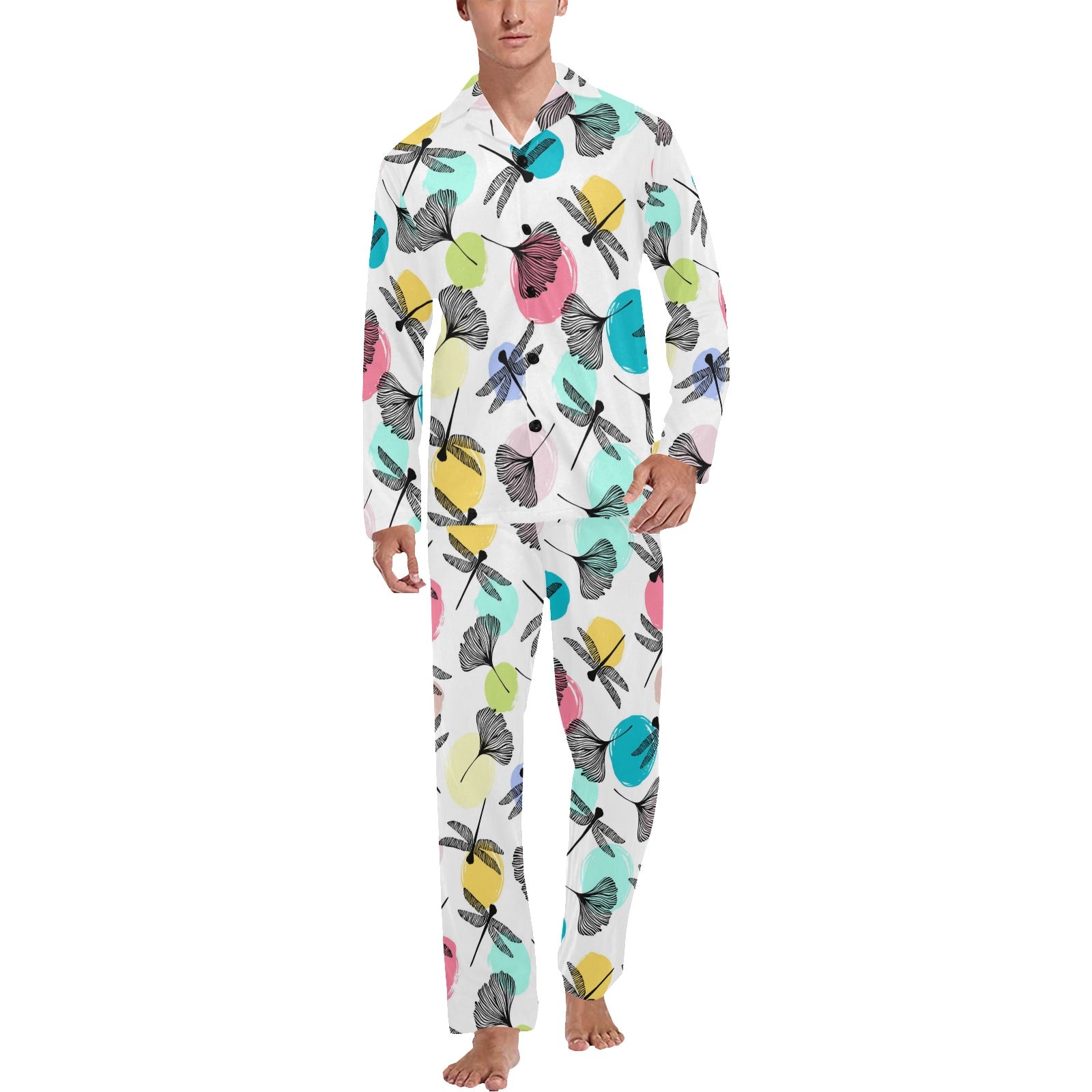 Dragonflies ginkgo leaves pattern Men's Long Pajama Set