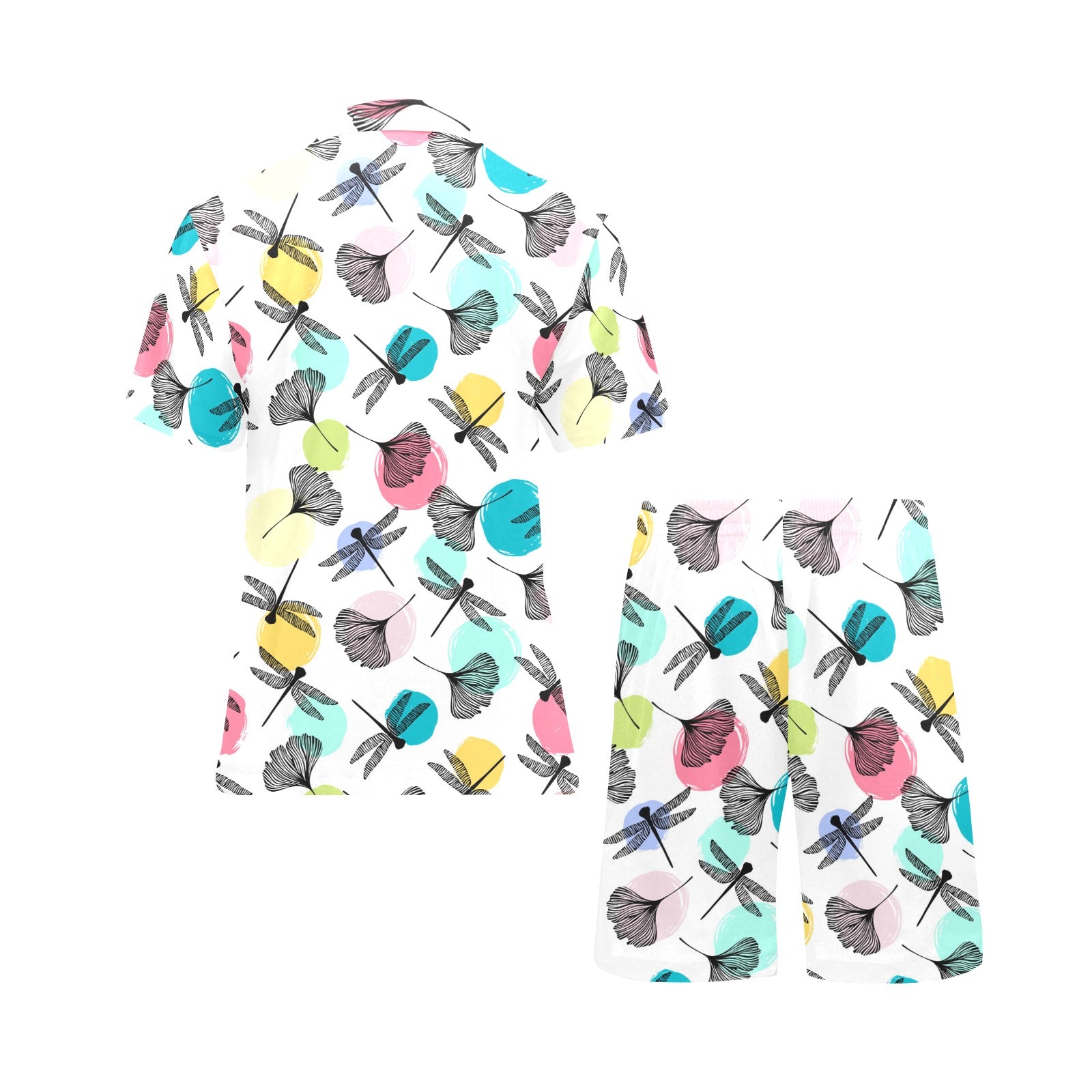 Dragonflies ginkgo leaves pattern Men's V-Neck Short Pajama Set