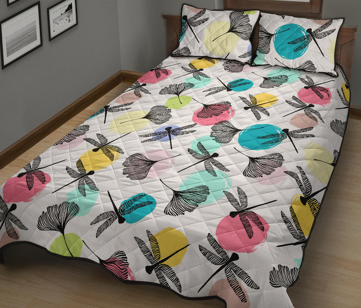 Dragonflies ginkgo leaves pattern Quilt Bed Set