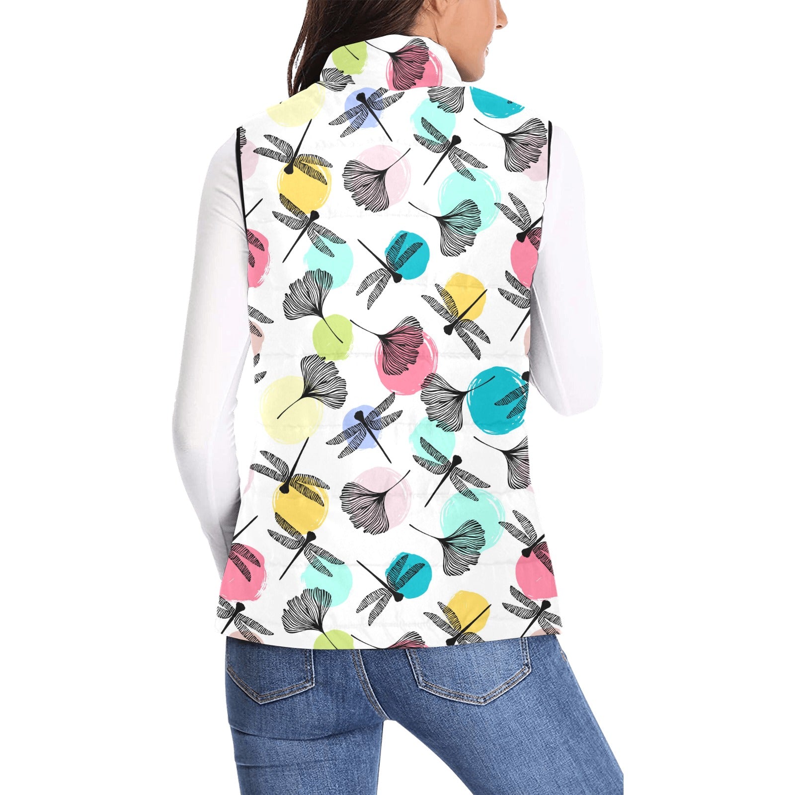 Dragonflies ginkgo leaves pattern Women's Padded Vest