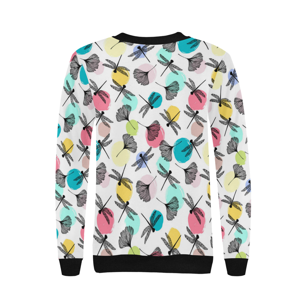 Dragonflies ginkgo leaves pattern Women's Crew Neck Sweatshirt is a uniqued design and limited item. It made to order, hand printed, and sewn with love in our factory.