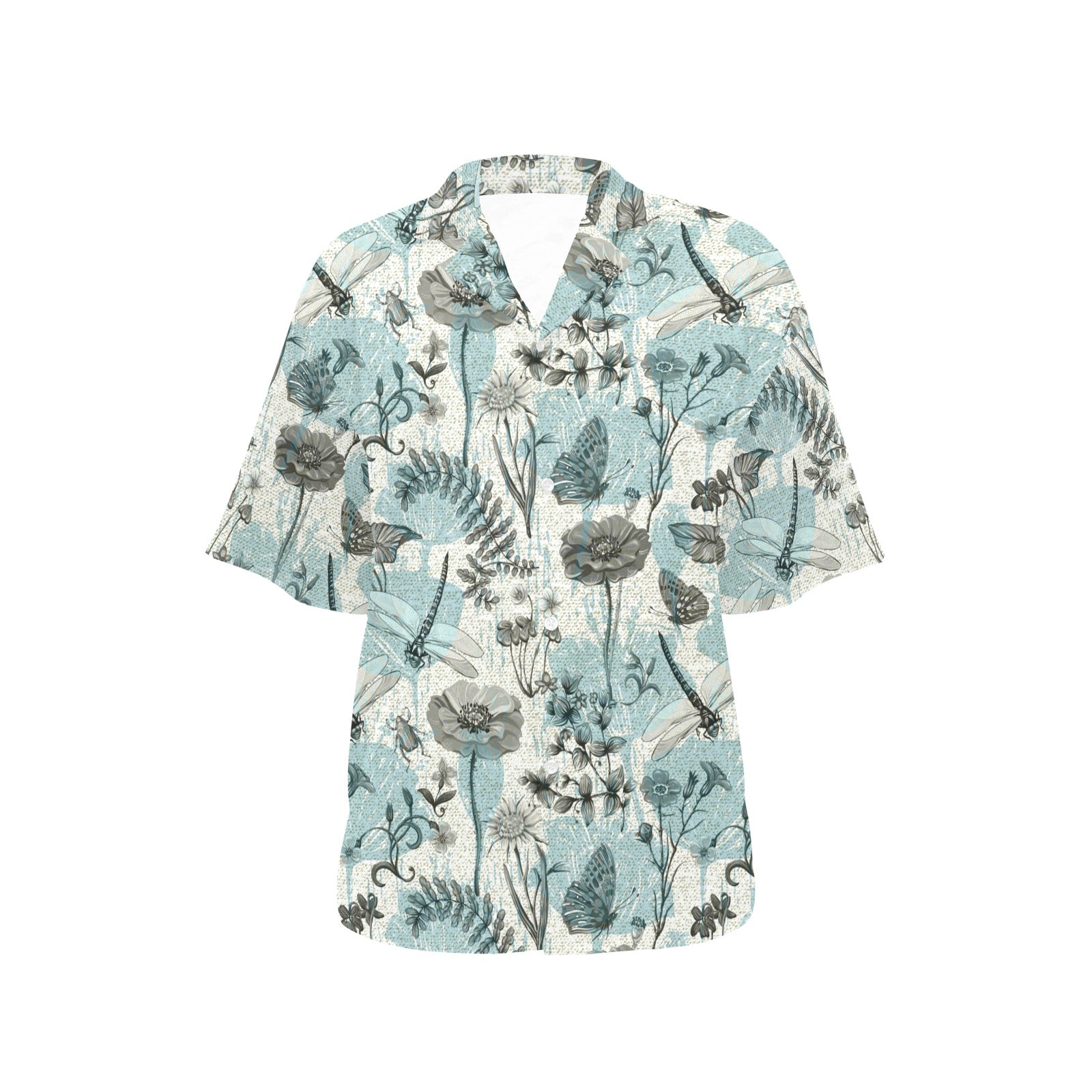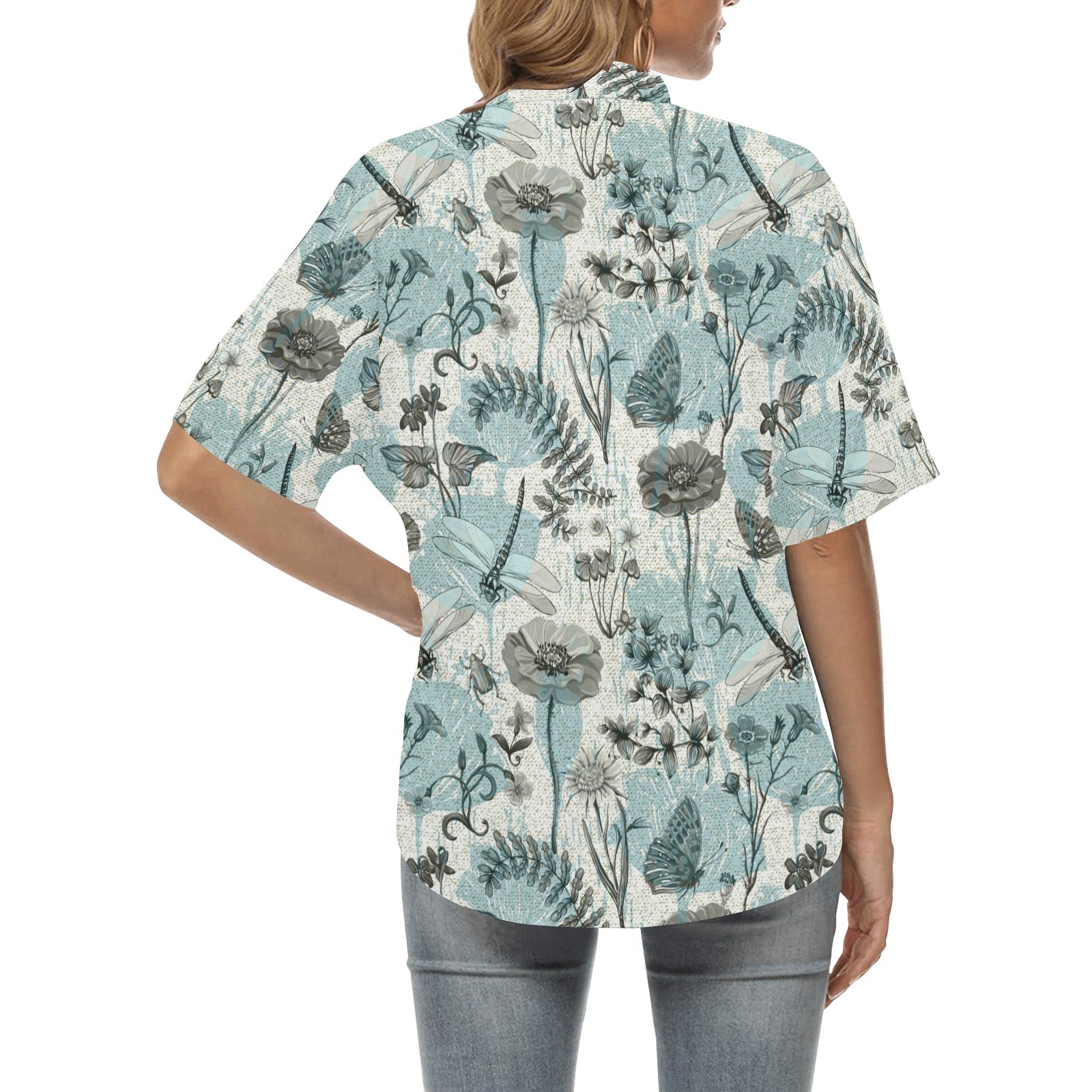 Dragonfly Butterfly Plants insect flower vintage s Women's All Over Print Hawaiian Shirt