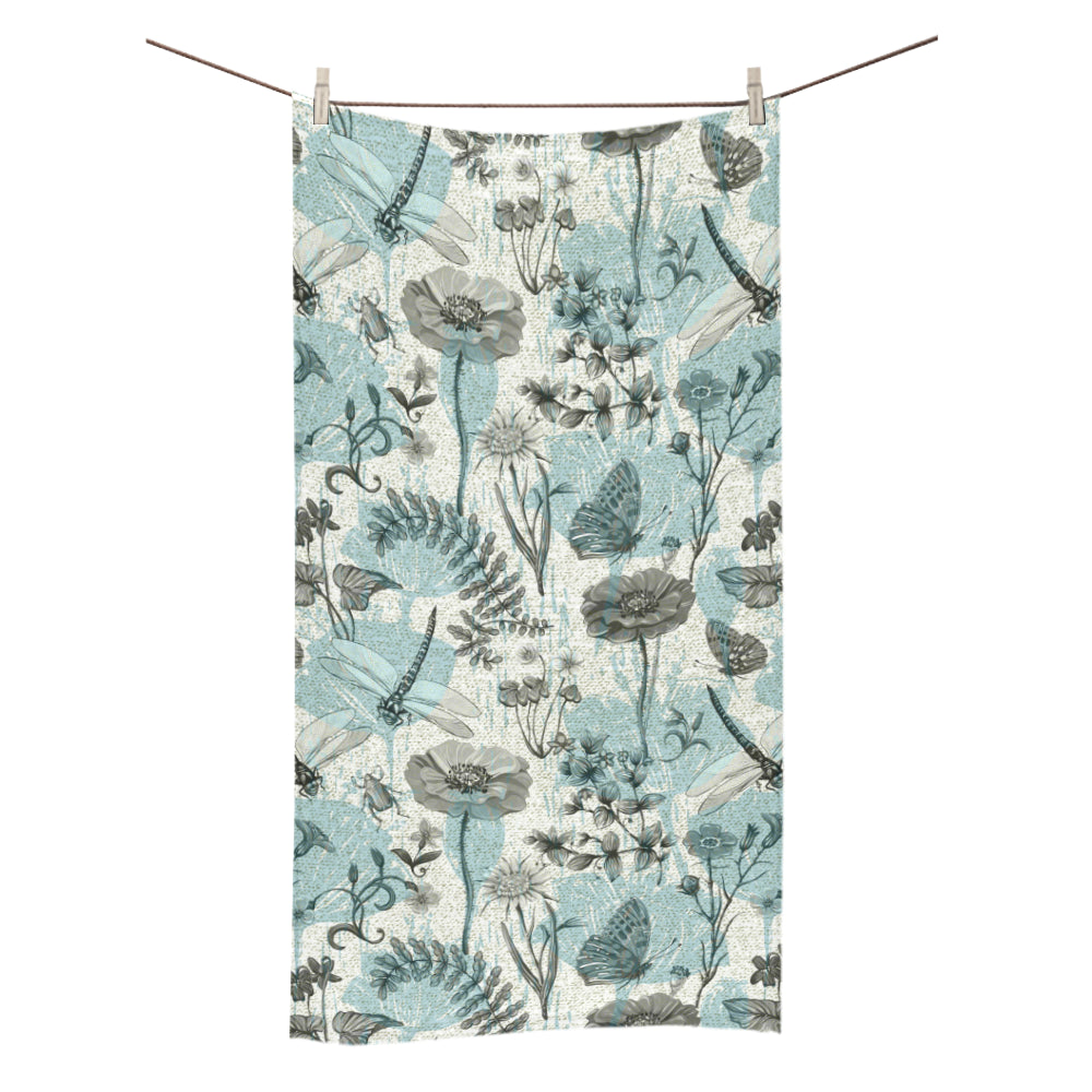 Dragonfly Butterfly Plants insect flower vintage s Bath Towel 30"x56" is a uniqued design and limited item. It made to order, hand printed, and sewn with love in our factory.