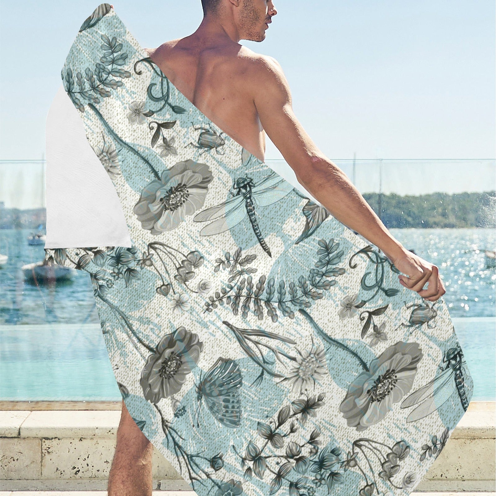 Dragonfly Butterfly Plants insect flower vintage s Beach Towel
