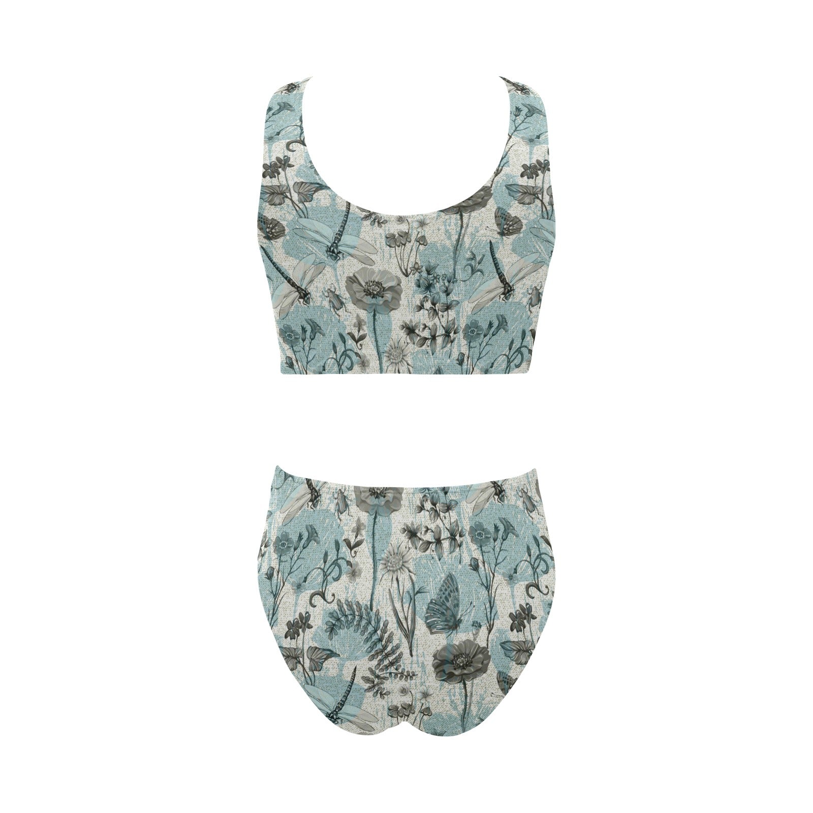 Dragonfly Butterfly Plants insect flower vintage s Chest Bowknot High Waisted Bikini Swimsuit
