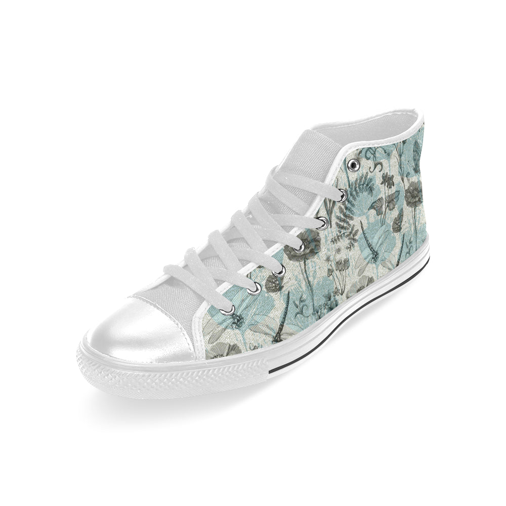 Dragonfly Butterfly Plants insect flower vintage s Men's High Top Canvas Shoes White