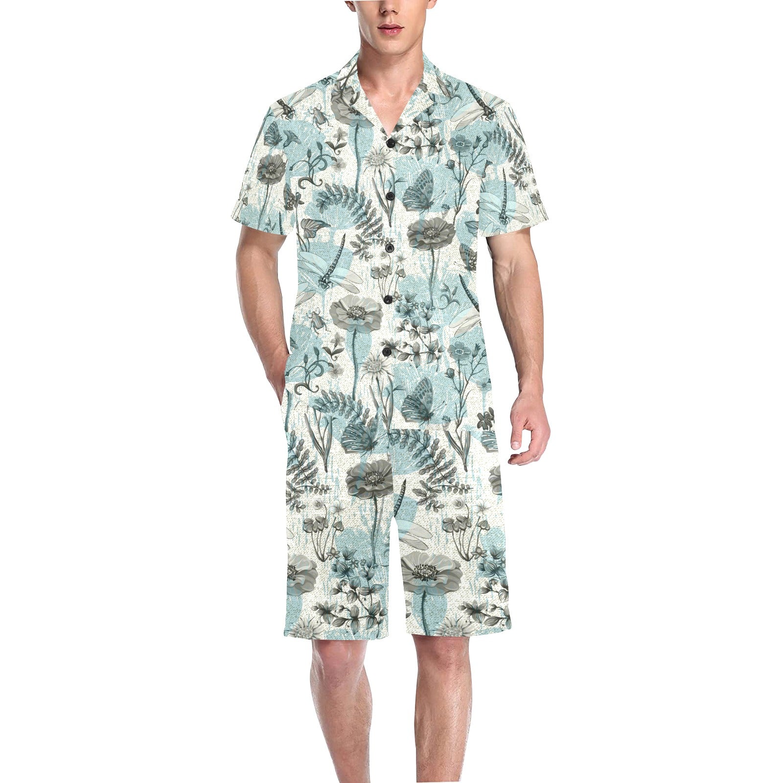 Dragonfly Butterfly Plants insect flower vintage s Men's V-Neck Short Pajama Set