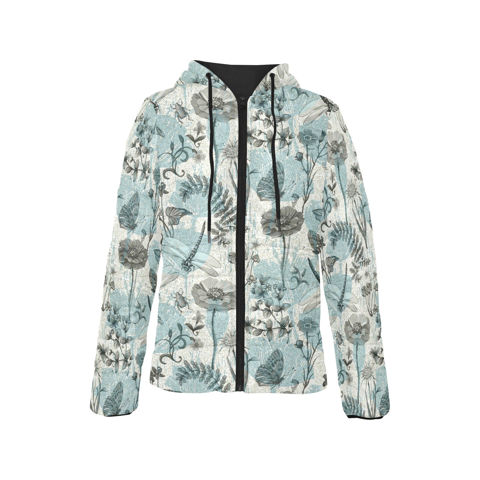 Dragonfly Butterfly Plants insect flower vintage s Women's Padded Hooded Jacket