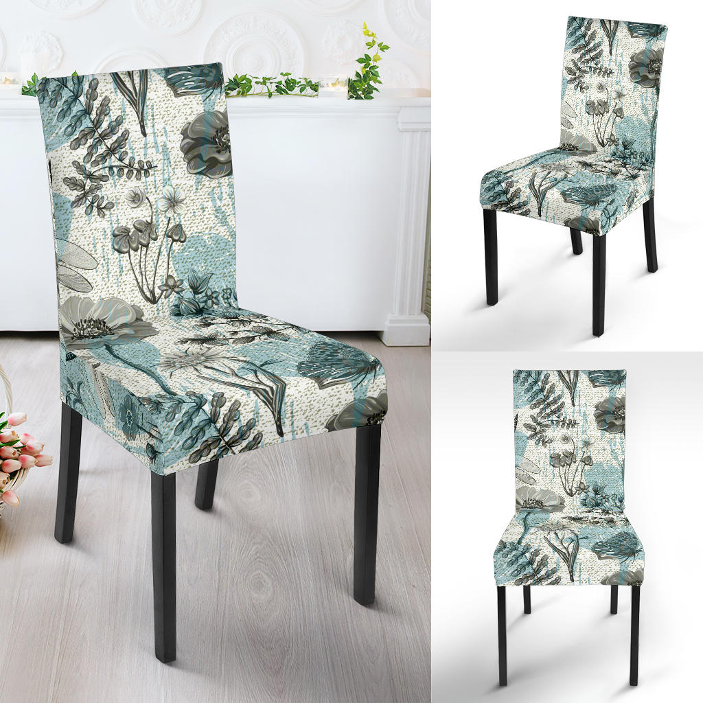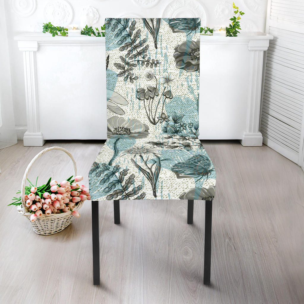 Dragonfly Butterfly Plants Insect Flower Vintage Style Pattern Dining Chair Slipcover