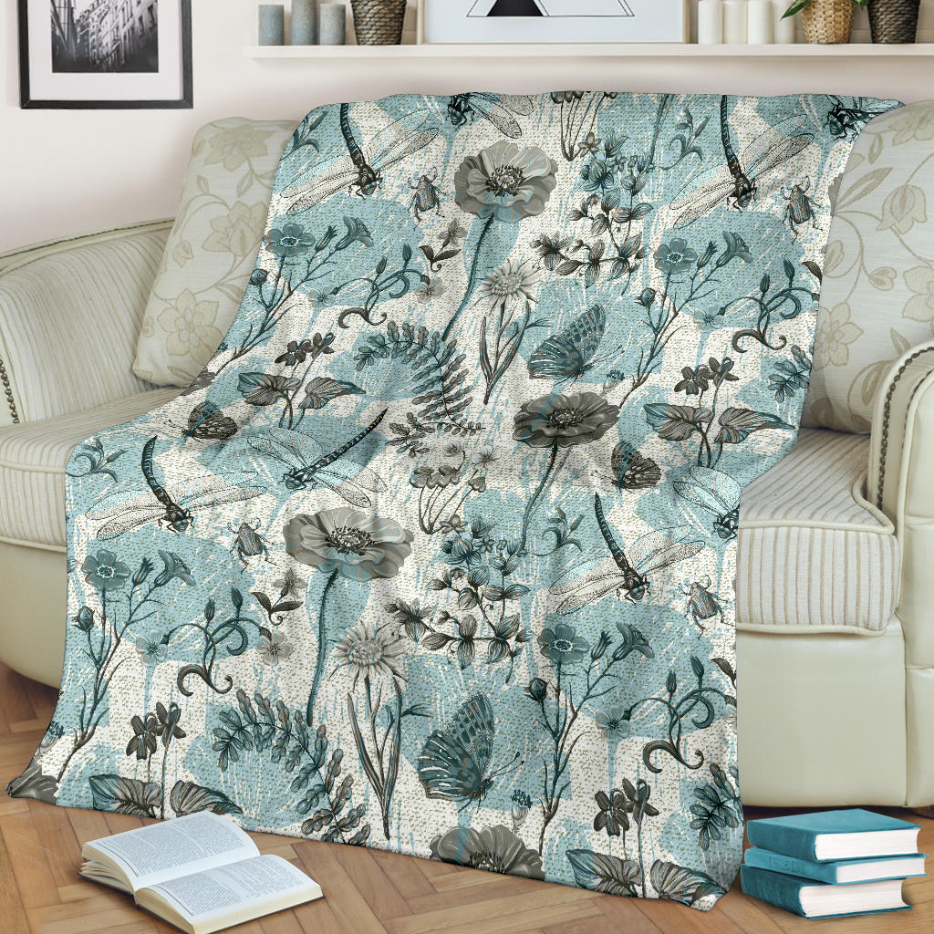 Dragonfly Butterfly Plants insect flower vintage style pattern Premium Blanket is a uniqued design and limited item. It made to order, hand printed, and sewn with love in our factory.