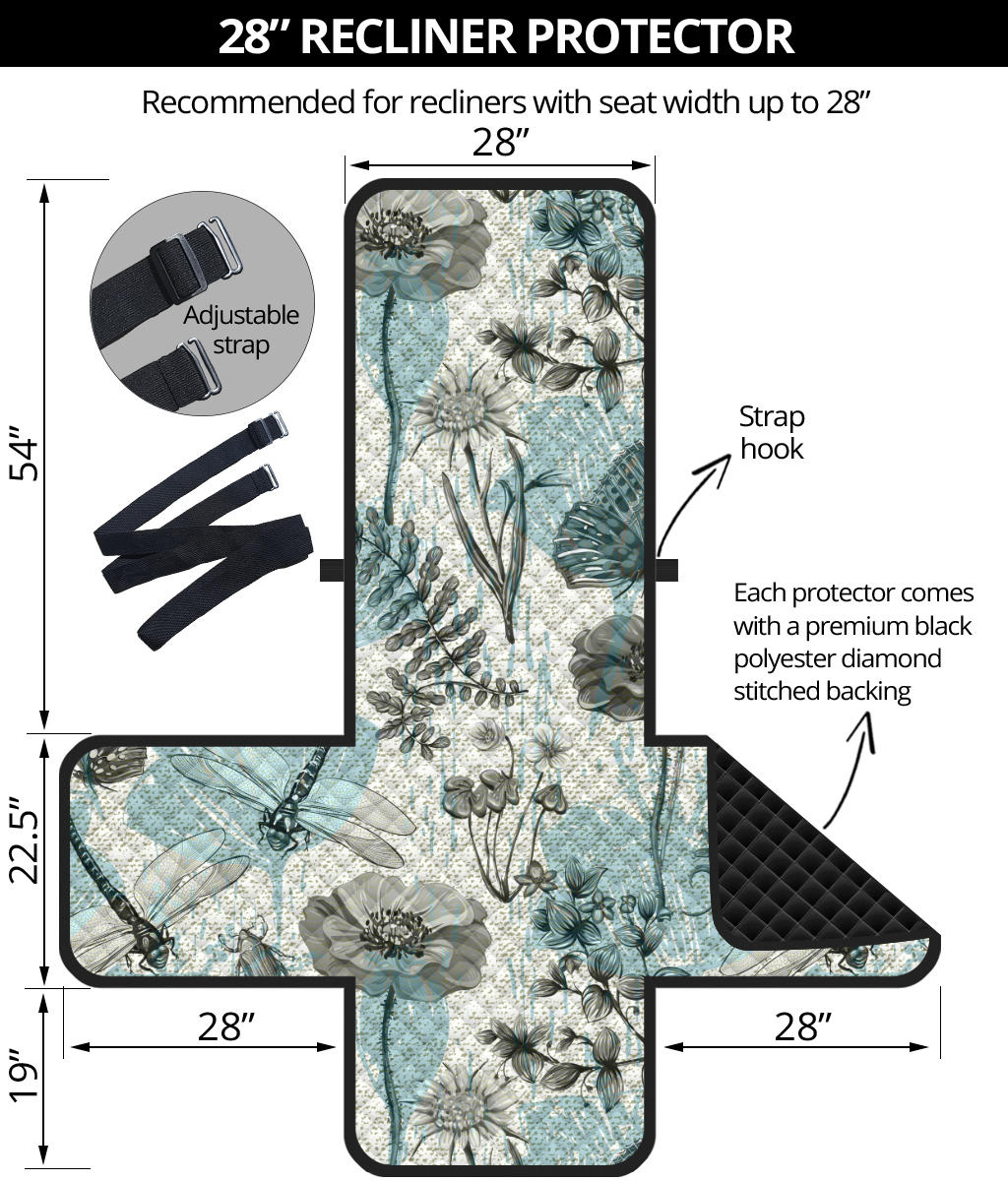Dragonfly Butterfly Plants insect flower vintage style pattern Recliner Cover Protector