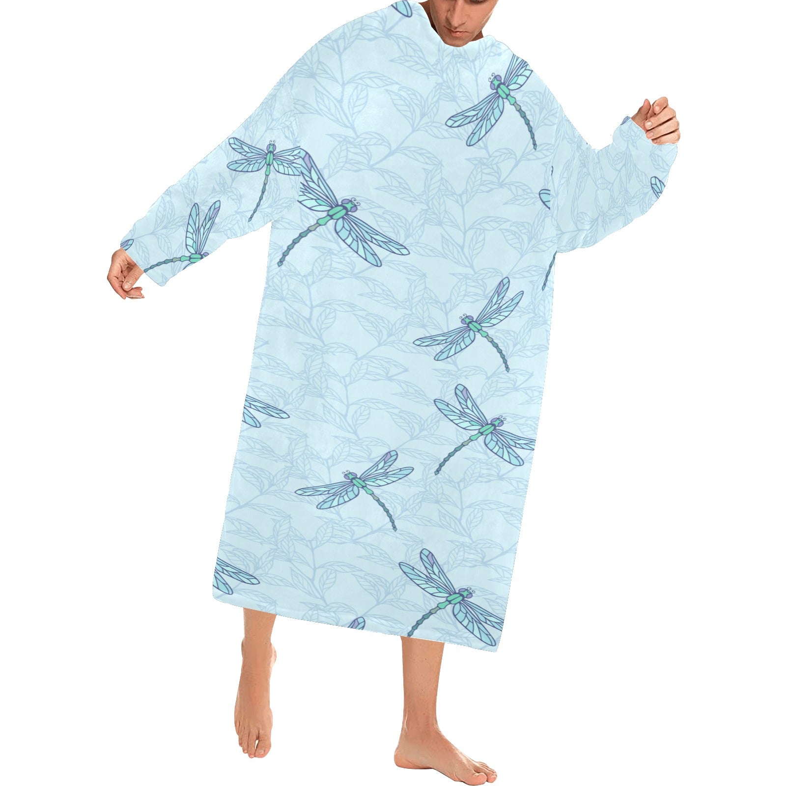 Dragonfly pattern blue background Blanket Robe with Sleeves