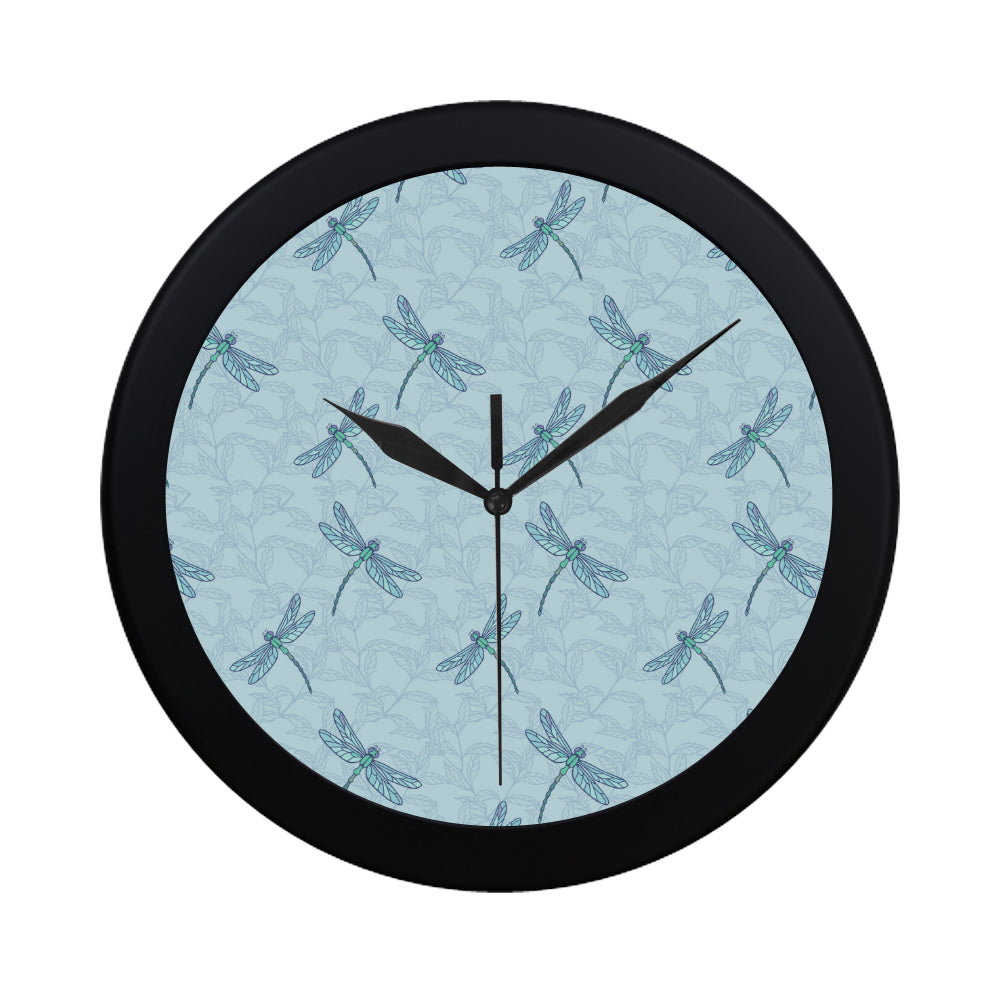 Dragonfly pattern blue background Elegant Black Wall Clock