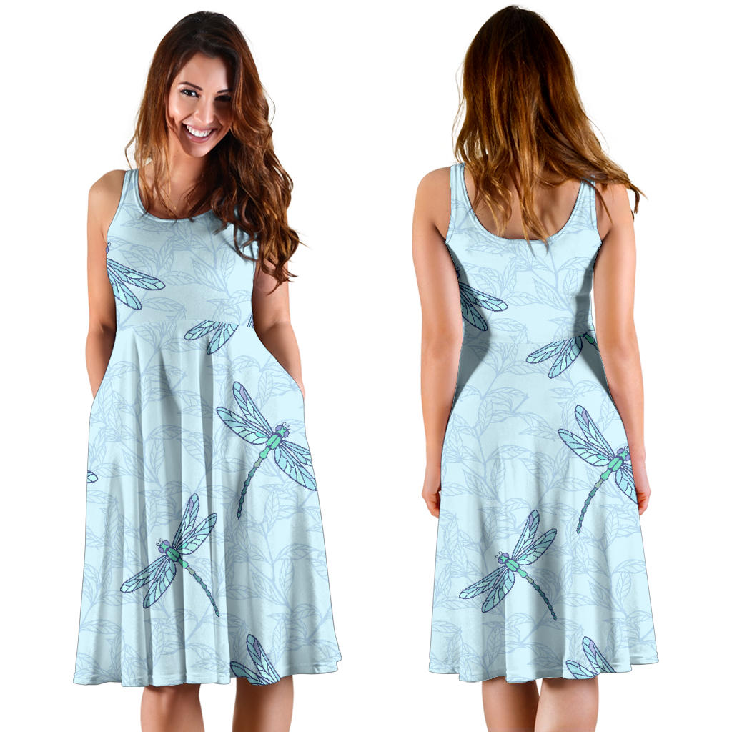 Dragonfly Pattern Blue Background Sleeveless Midi Dress