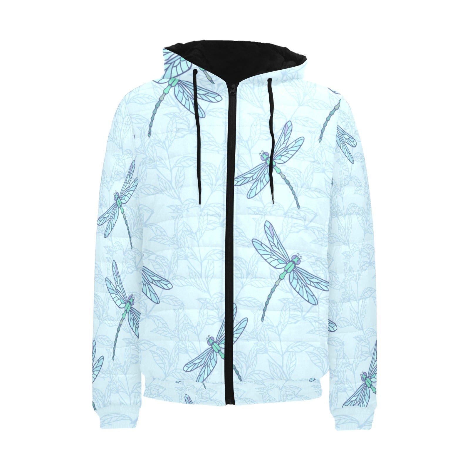 Dragonfly pattern blue background Men's Padded Hooded Jacket