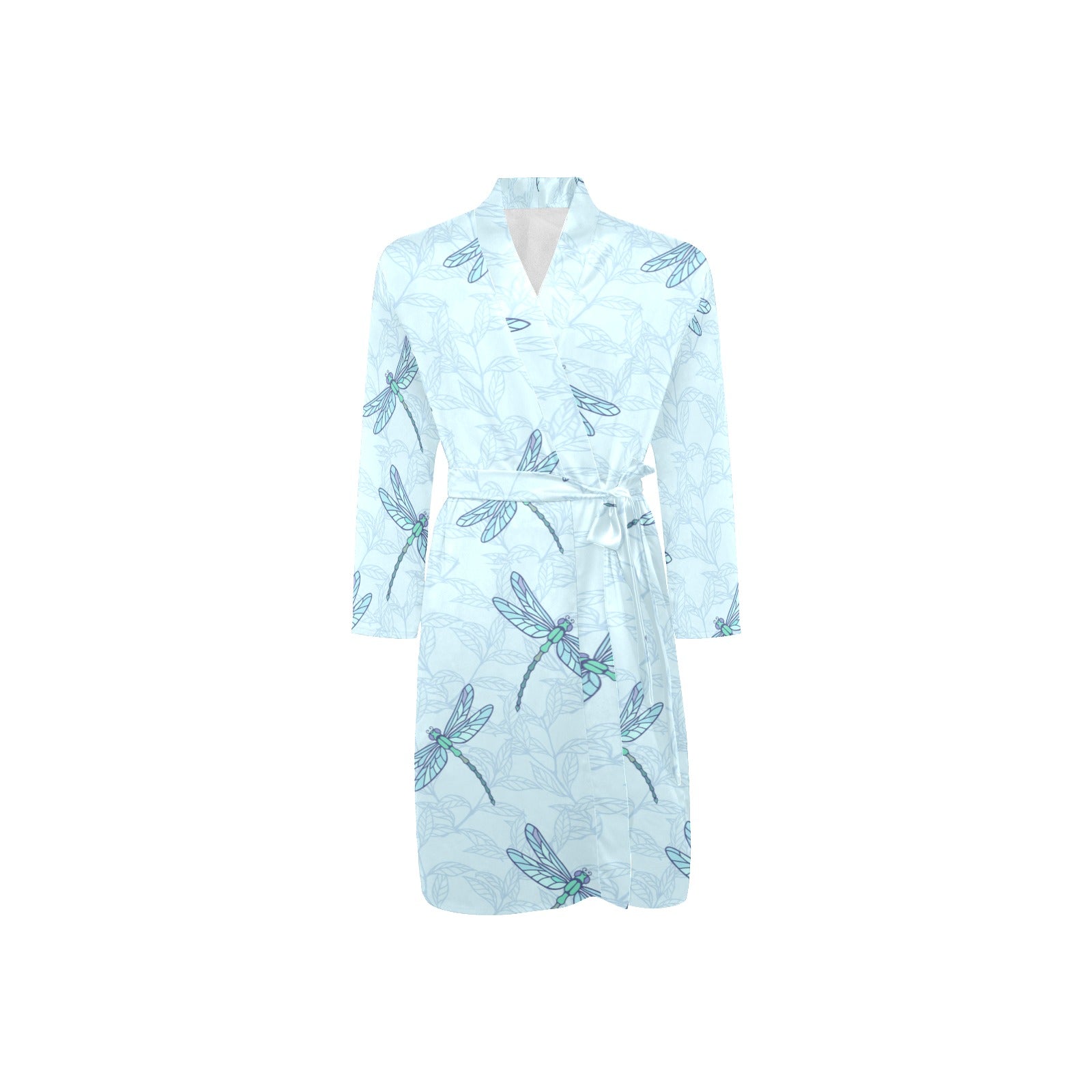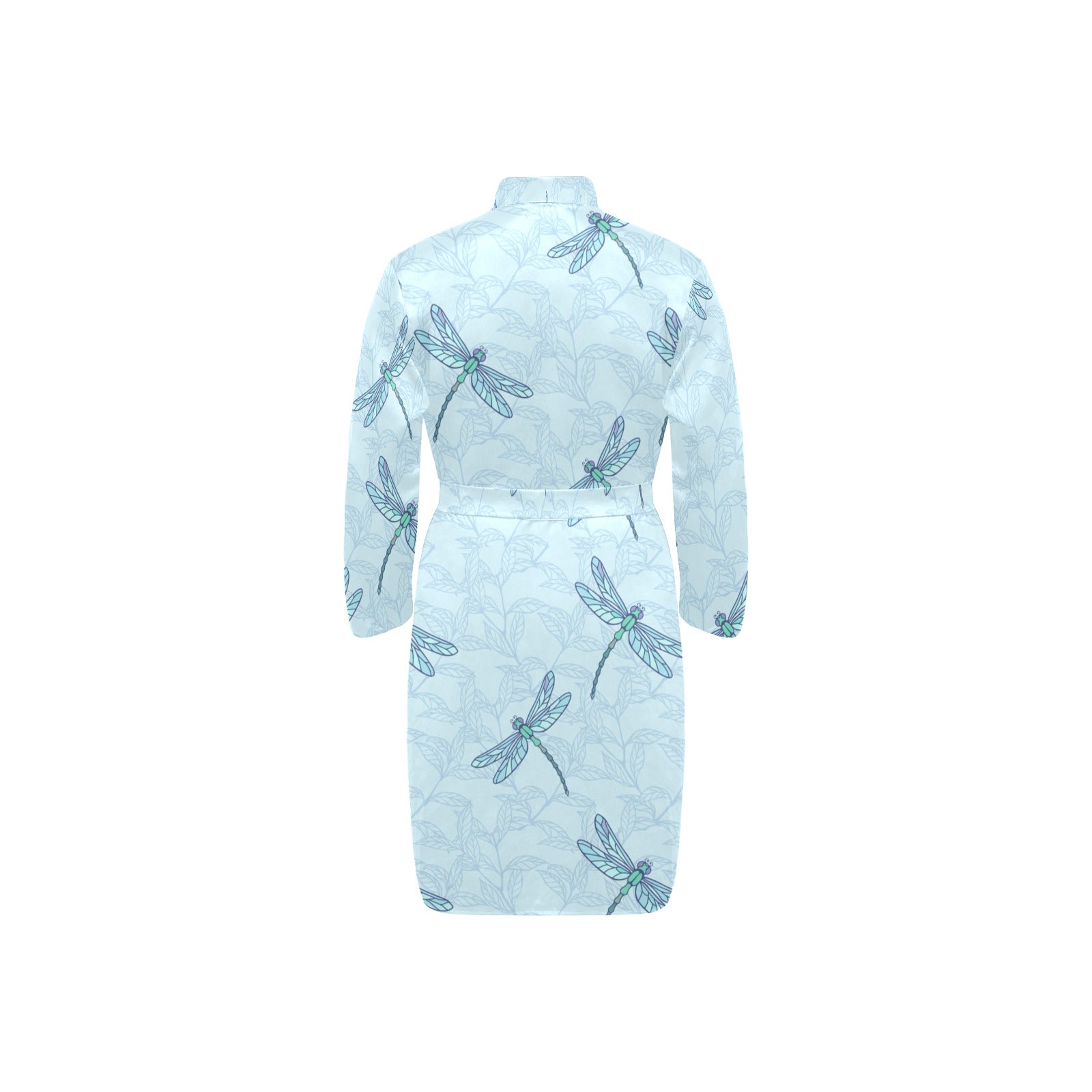 Dragonfly pattern blue background Men's Long Sleeve Belted Night Robe
