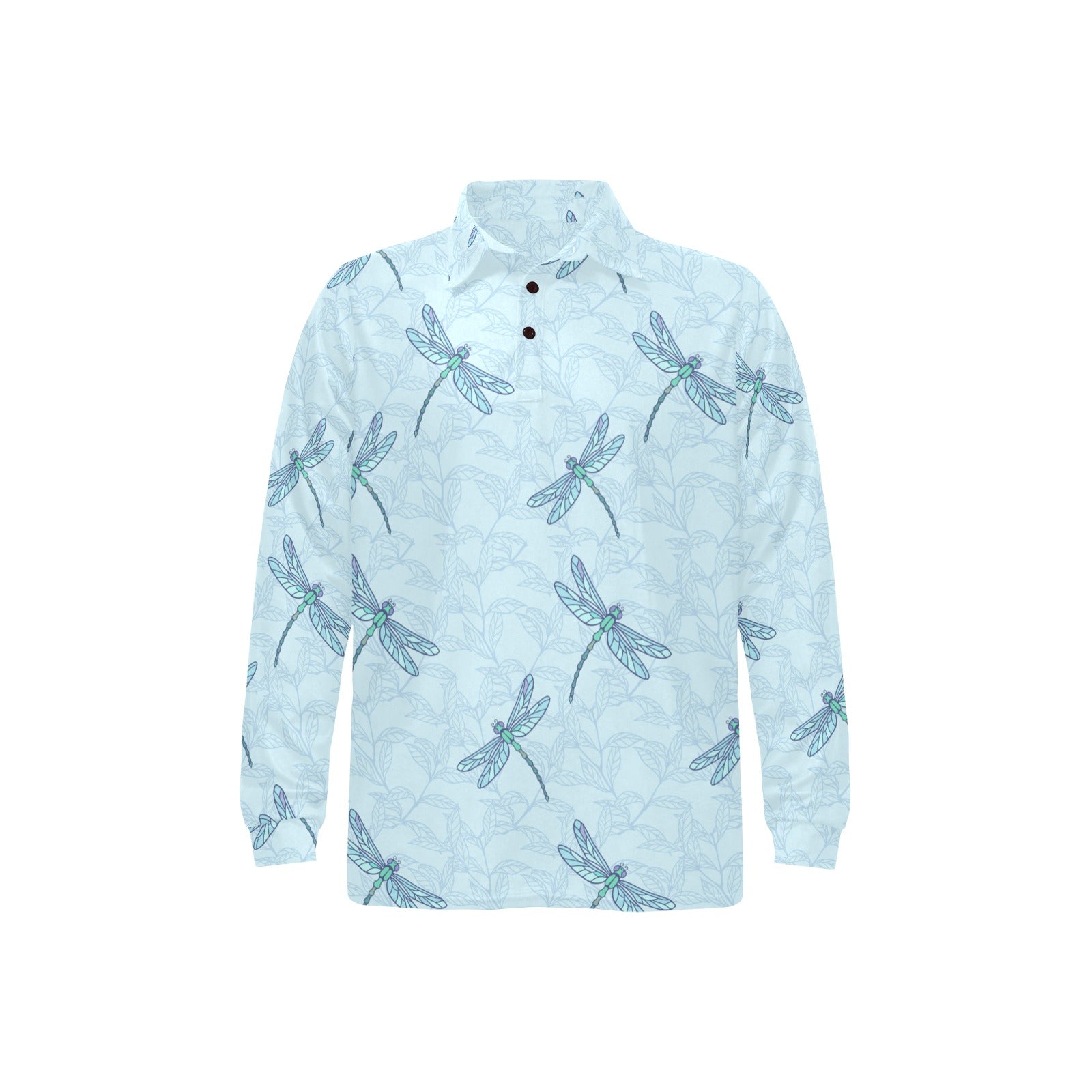 Dragonfly pattern blue background Men's Long Sleeve Polo Shirt