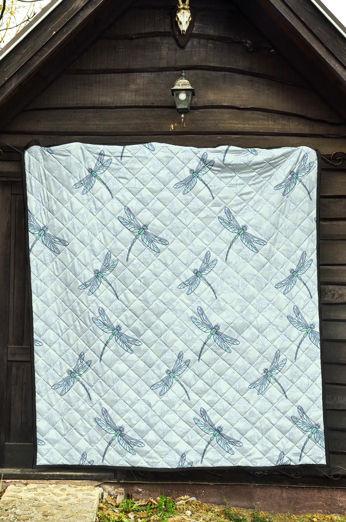 Dragonfly Pattern Blue Background Premium Quilt is a uniqued design and limited item. It made to order, hand printed, and sewn with love in our factory.
