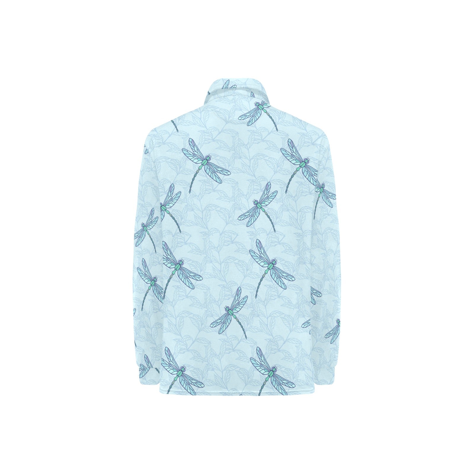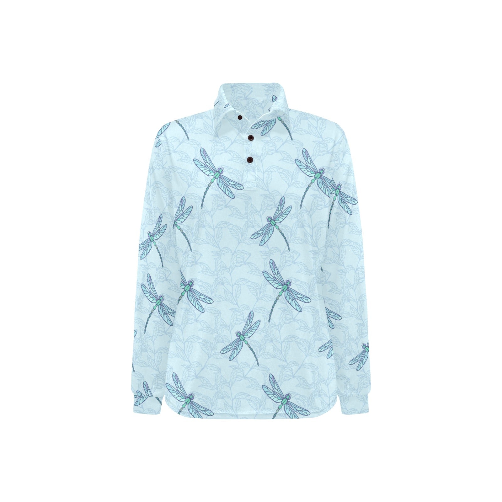 Dragonfly pattern blue background Women's Long Sleeve Polo Shirt
