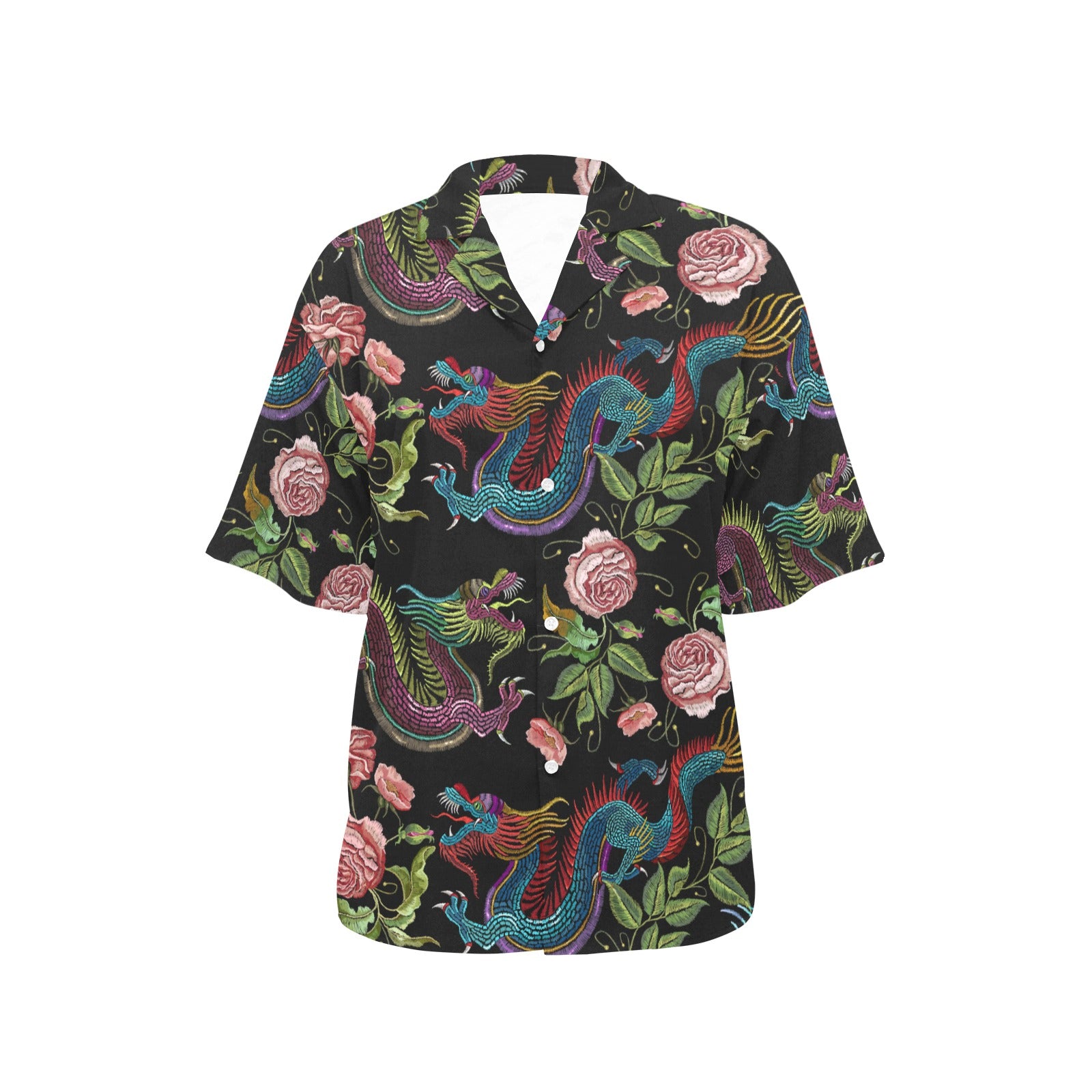 Dragons flower pattern Women's All Over Print Hawaiian Shirt