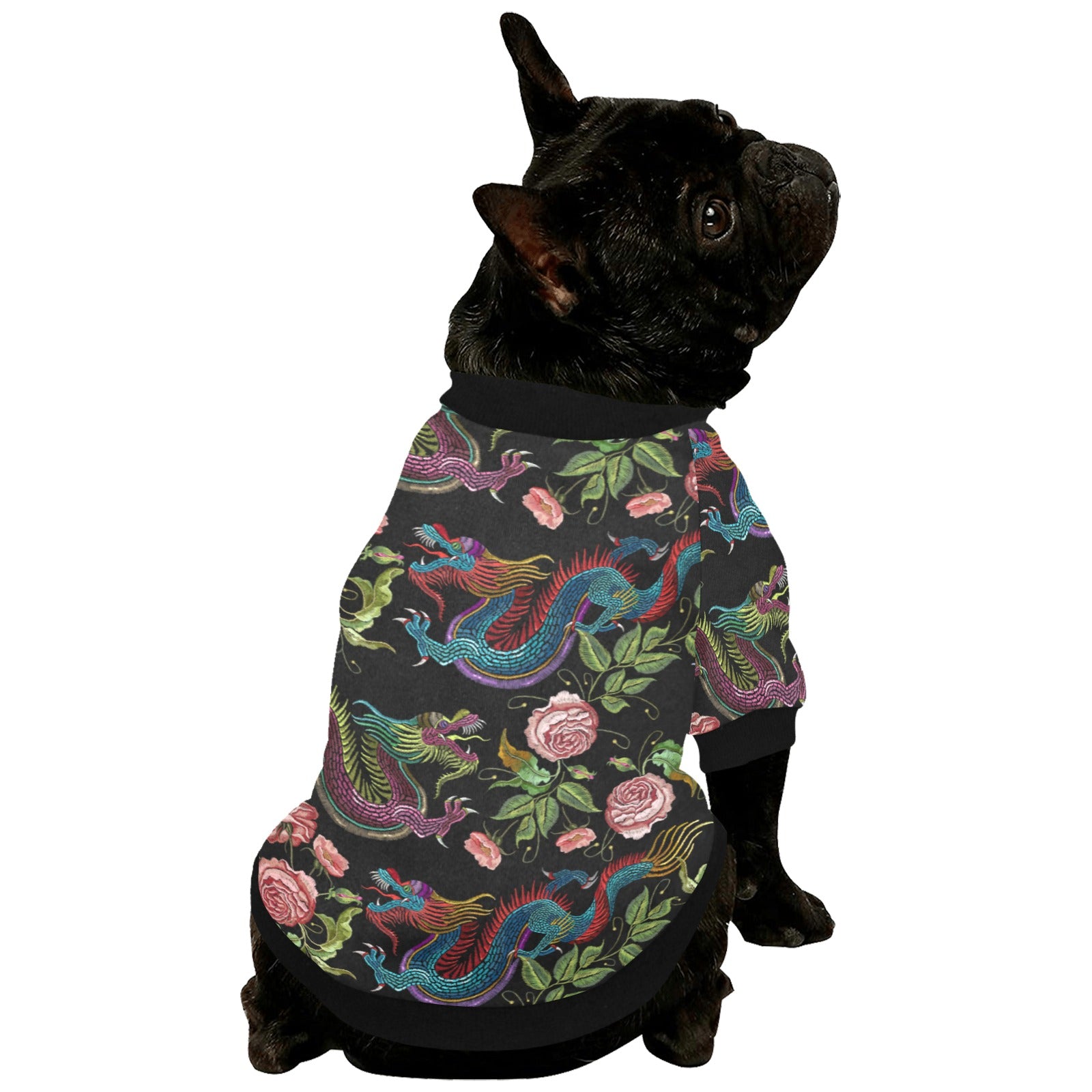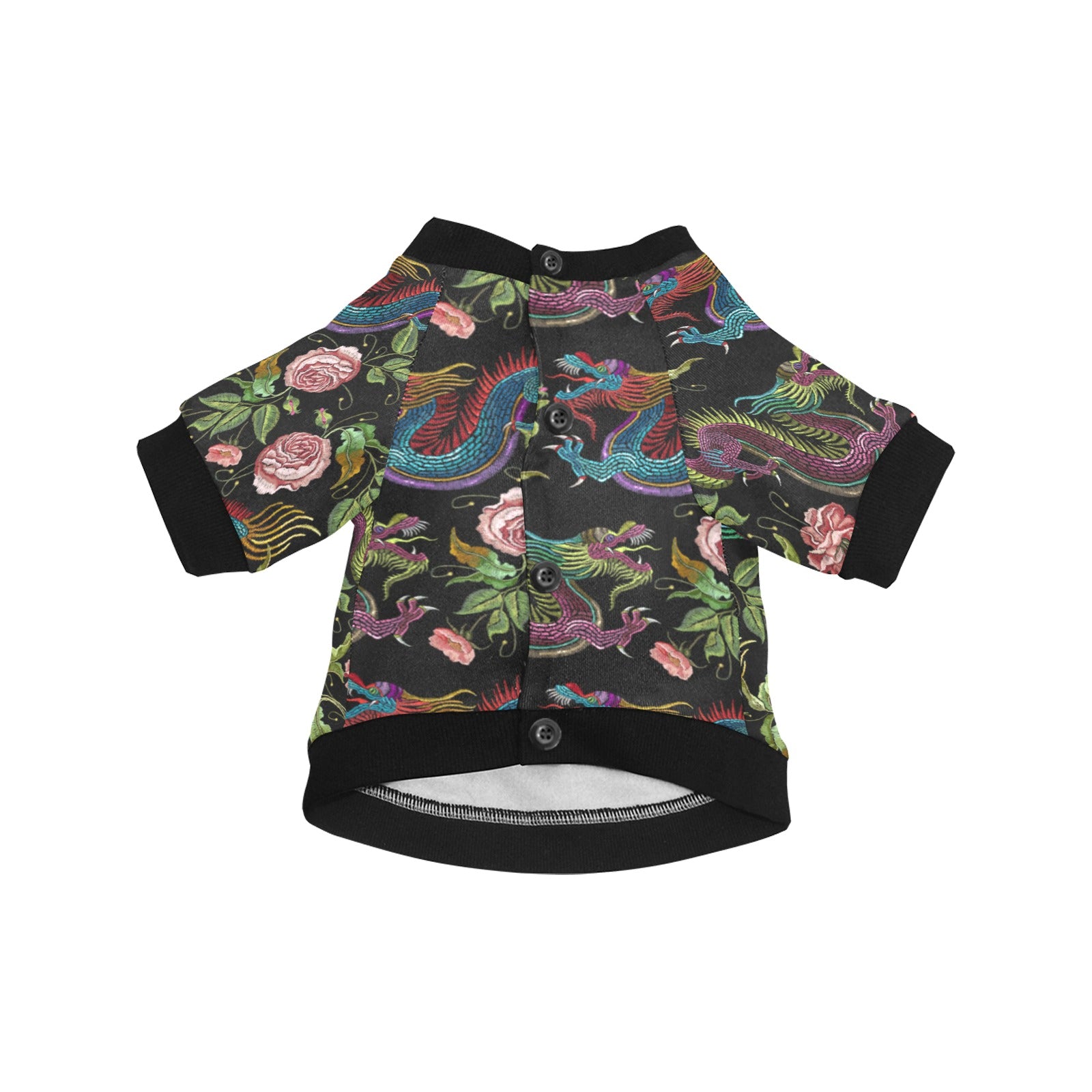 Dragons flower pattern All Over Print Pet Dog Round Neck Fuzzy Shirt